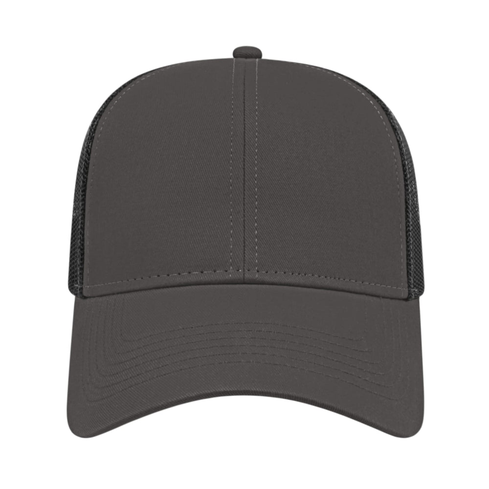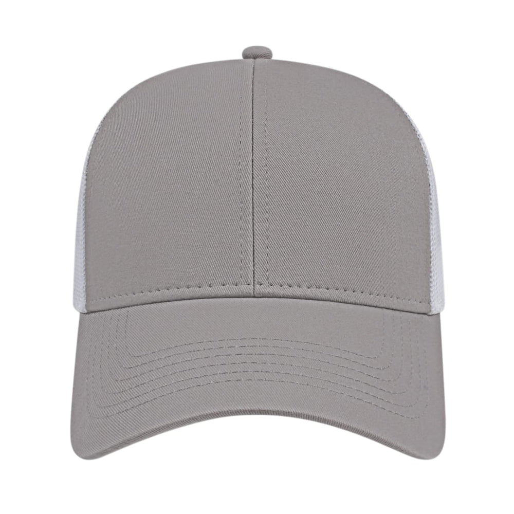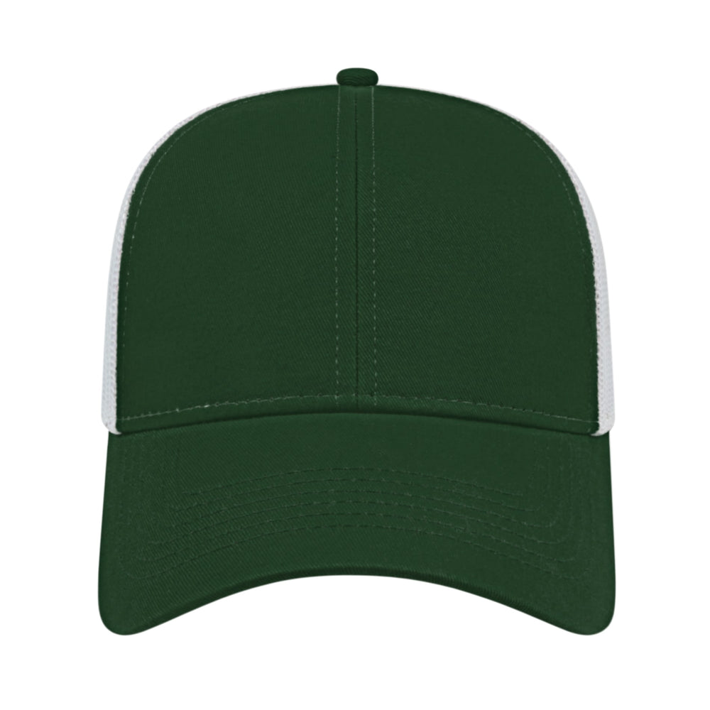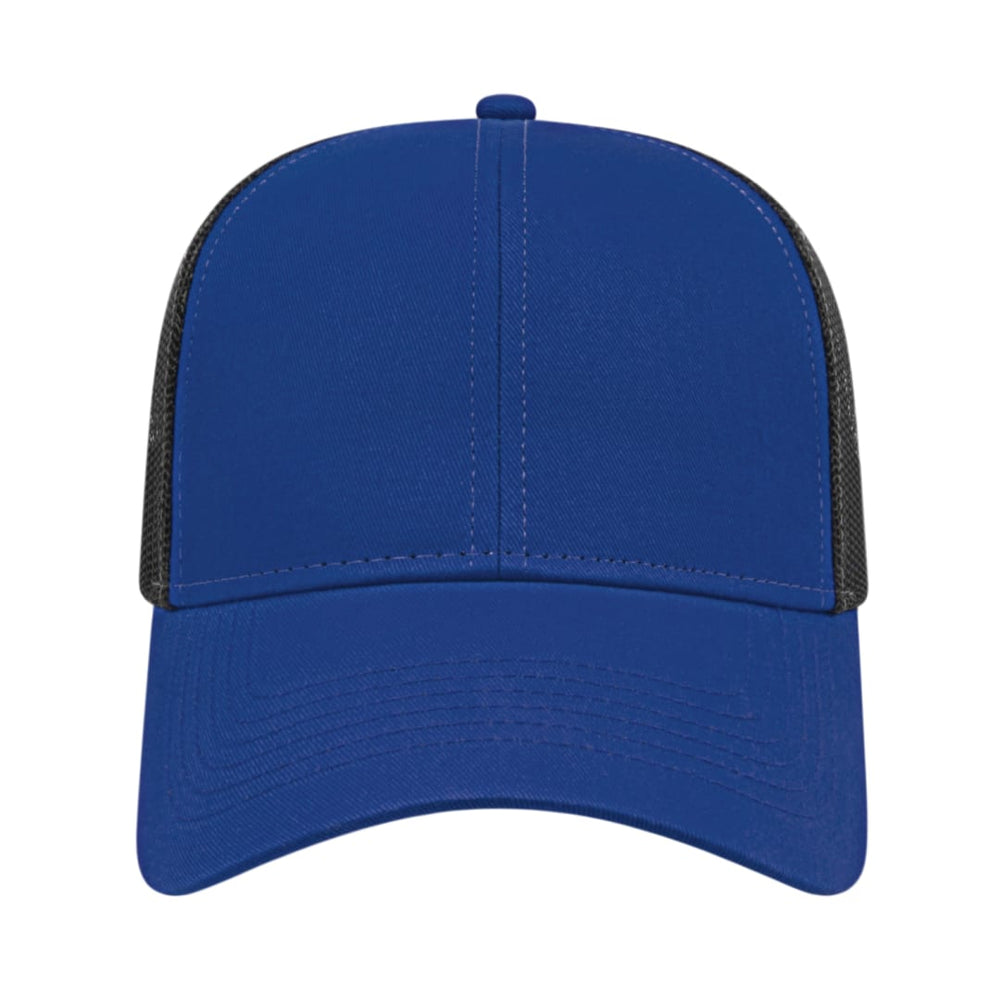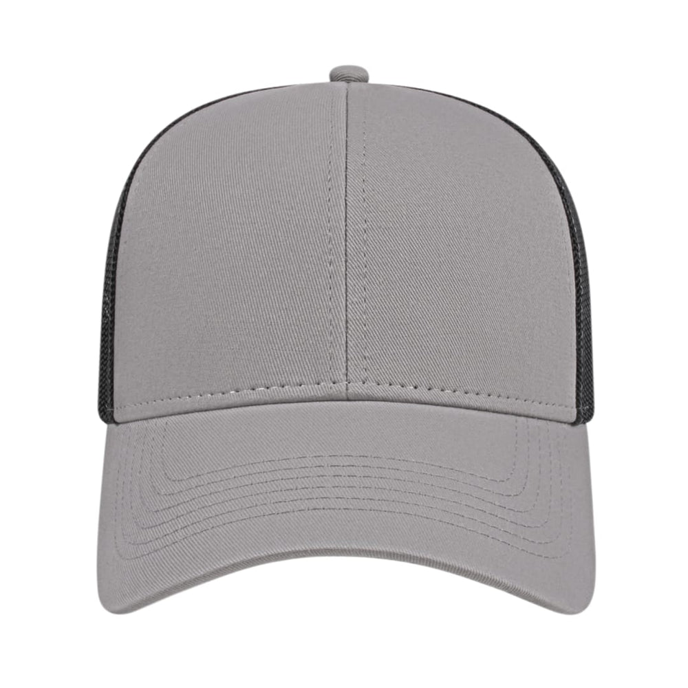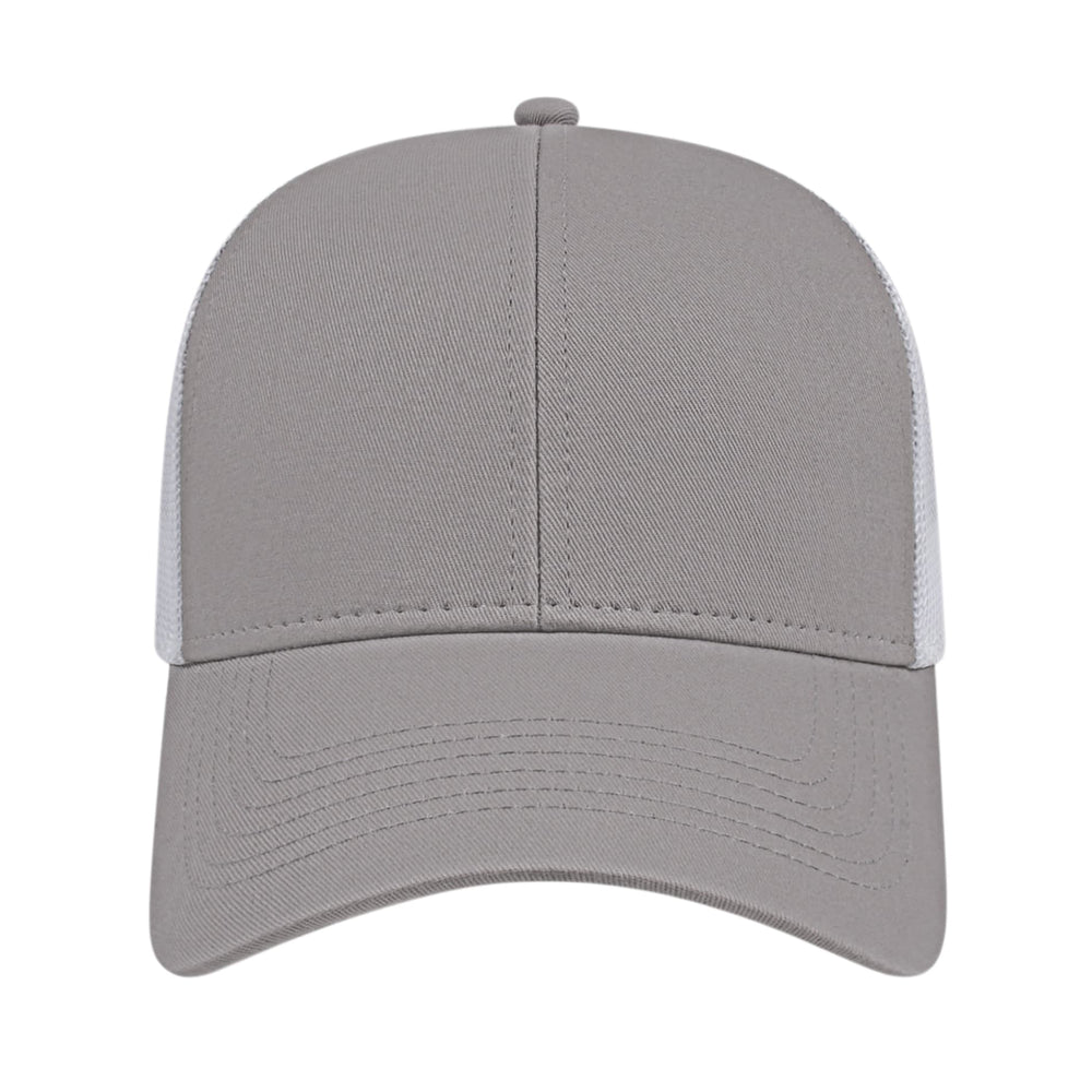 The Cap America Two Tone Trucker Mesh Back Cap is a medium profile, six panel structured cap made using a flat cotton twill with a trucker mesh back. This trucker hat features a standard pre-curved visor and an adjustable plastic snap tab closure.
