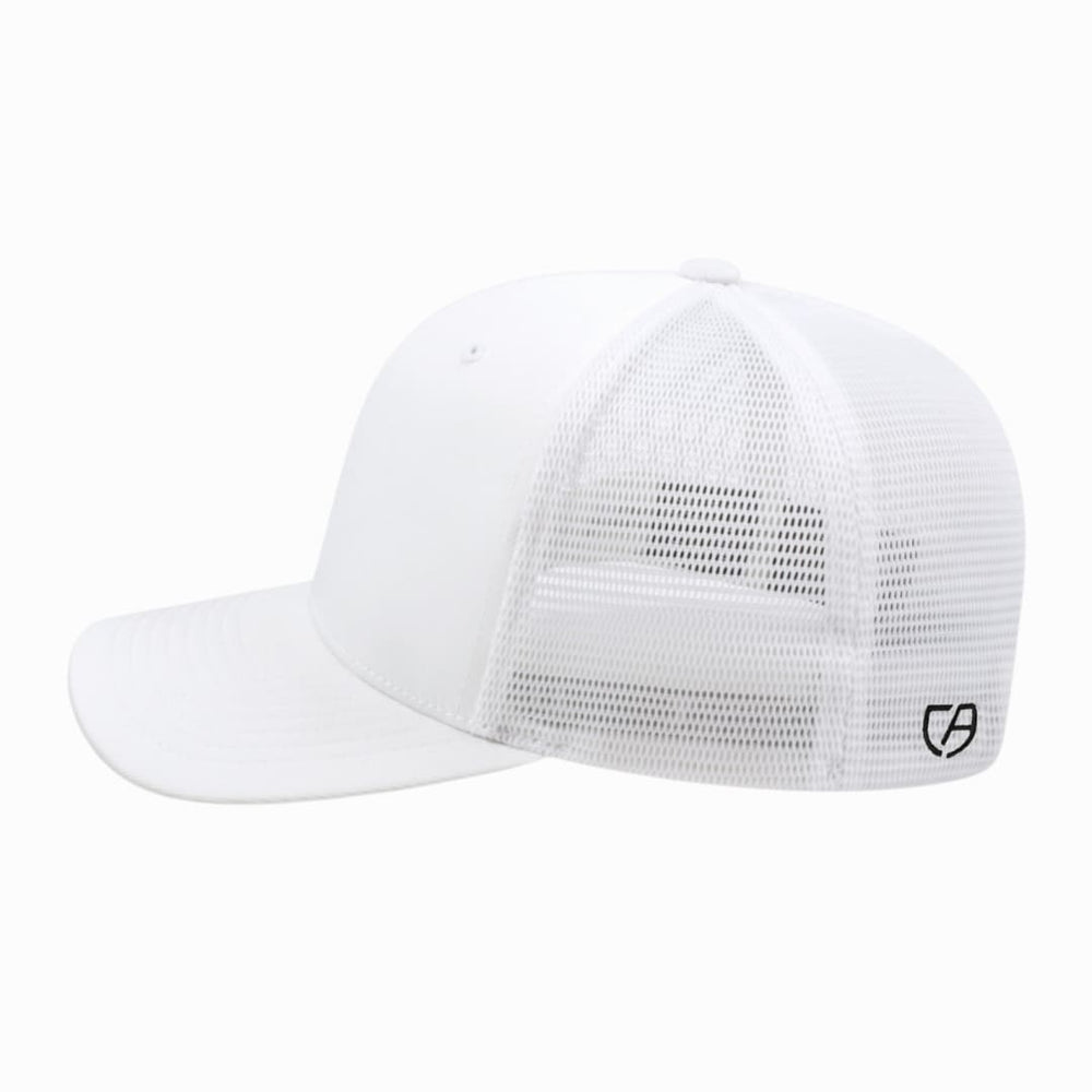 The Cap America Flexfit 110 Trucker Mesh Back Cap is a mid-profile, six panel structured trucker cap made using a poly/spandex blend fabric with a performance mesh. This cap features a shapeable pre-curved visor, UV protection, moisture wicking properties, a 110 Technology® sweatband, and an adjustable plastic snap back closure.