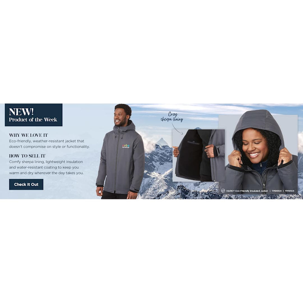 Meet the stylish, sustainable men’s Hardy Eco Insulated Jacket. Its breathable fabric, cozy sherpa lining and insulation are all made from recycled polyester, and its zipper and pinch label are also made from recycled content certified by the Global Recycled Standard (GRS). It also has a PFC-free water-resistant coating which means no perfluorinated chemicals were used to treat the garment. It provides lightweight weather protection, making it a comfy, eco-friendly piece you can feel good about wearing. The Hardy features comfy rib knit storm cuffs, concealed hood cordlocks, plus adjustable cuff tabs and a dropped back hem to help keep cold air out. With style that looks great anywhere, this versatile jacket will become your new favorite for chilly or rainy days. And through a partnership with 1% For The Planet, one percent of sales are donated to environmental nonprofits.