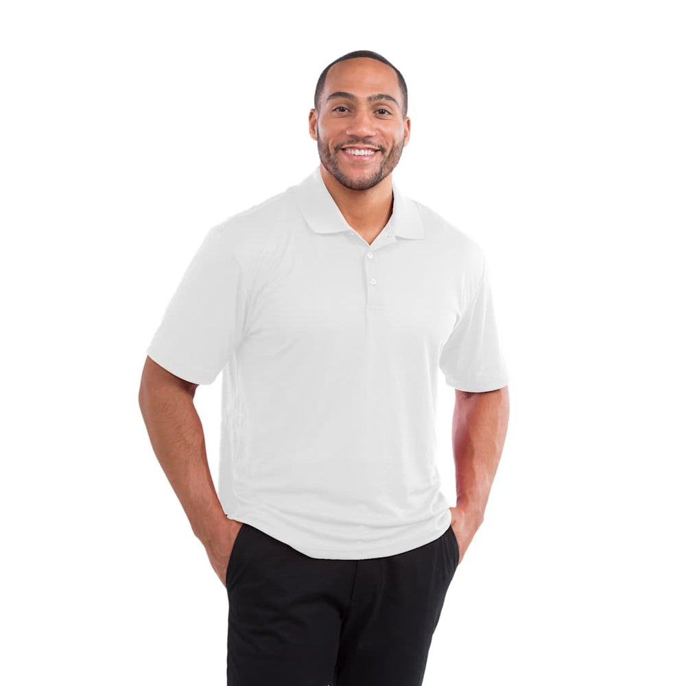 Advanced WEBTech; 100 wicking fabric offers breathable moisture management. Classic flat knit collar with long, slimming two-button placket (women's). Contrast 'X' shaped bartacks at slits and taping on inside of slits. Laser not available on White.
