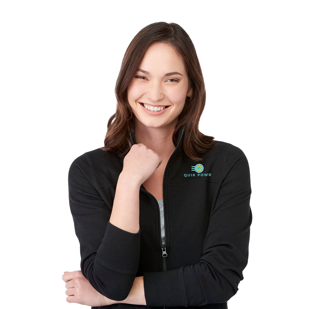 The women’s Argus Eco Fleece Full Zip combines classic styling with unbelievable comfort. With super-soft fleece made from recycled polyester and sustainable cotton certified by the Better Cotton Initiative (BCI), plus a recycled pinch label and eco knit tape, it’s a lightweight layer you can feel good about wearing all year round. It has two lower welt pockets, plus an interior media pocket for your phone. It also features a rib-knit hem and cuffs for a comfier fit, and the shaped seams and tapered waist make it even more flattering. And with style that looks great in the office or out for drinks, it’s the perfect workleisure piece. It’s made with the same cozy, eco-friendly fabric as our Argus Fleece Hoody and Argus Fleece Full Zip Hoody. Through a partnership with 1% For The Planet, one percent of sales of all Eco products are donated to environmental nonprofits.