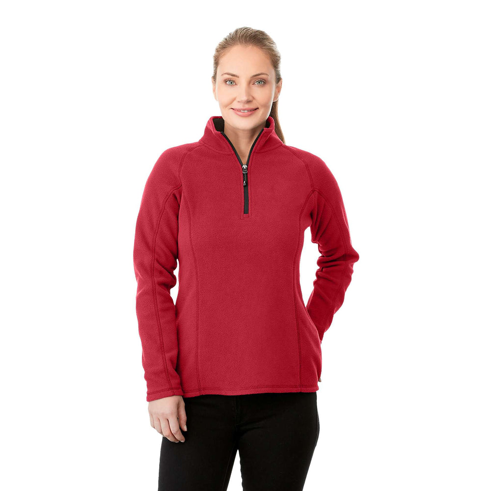 The comfy Bowlen Polyfleece comes in a quarter zip for men and half zip for women. Made with 100% polyester anti-pill microfleece, it features an interior thumb grab at the end of each sleeve for ease of layering and a contrast hanger loop inside the neck, while thoughtful details like easy-grip zipper pulls add to the retail feel. Made with the same cozy microfleece as the Rixford and Tyndall.