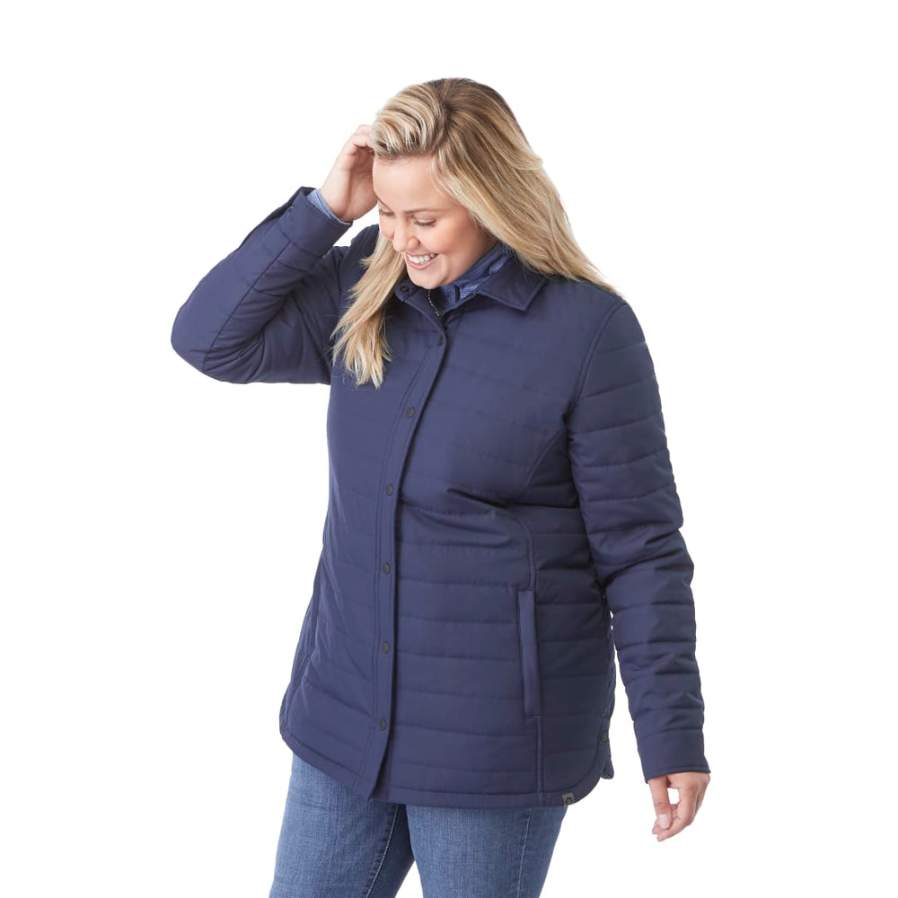 The women’s Porter Eco Insulated Shacket combines superior style with lightweight warmth and comfort, thanks to a cozy microfleece body lining. Made from 40% recycled polyester, it’s as eco-friendly as it is versatile. Adjustable snap cuffs so you can find the right fit and zippered front pockets to keep valuables safe. The shaped seams and tapered waist deliver a better fit, plus it has an on-trend crossover side hem. Features a shirt tail hem, and the articulated elbows and ergonomic sleeves let you move your arms freely.