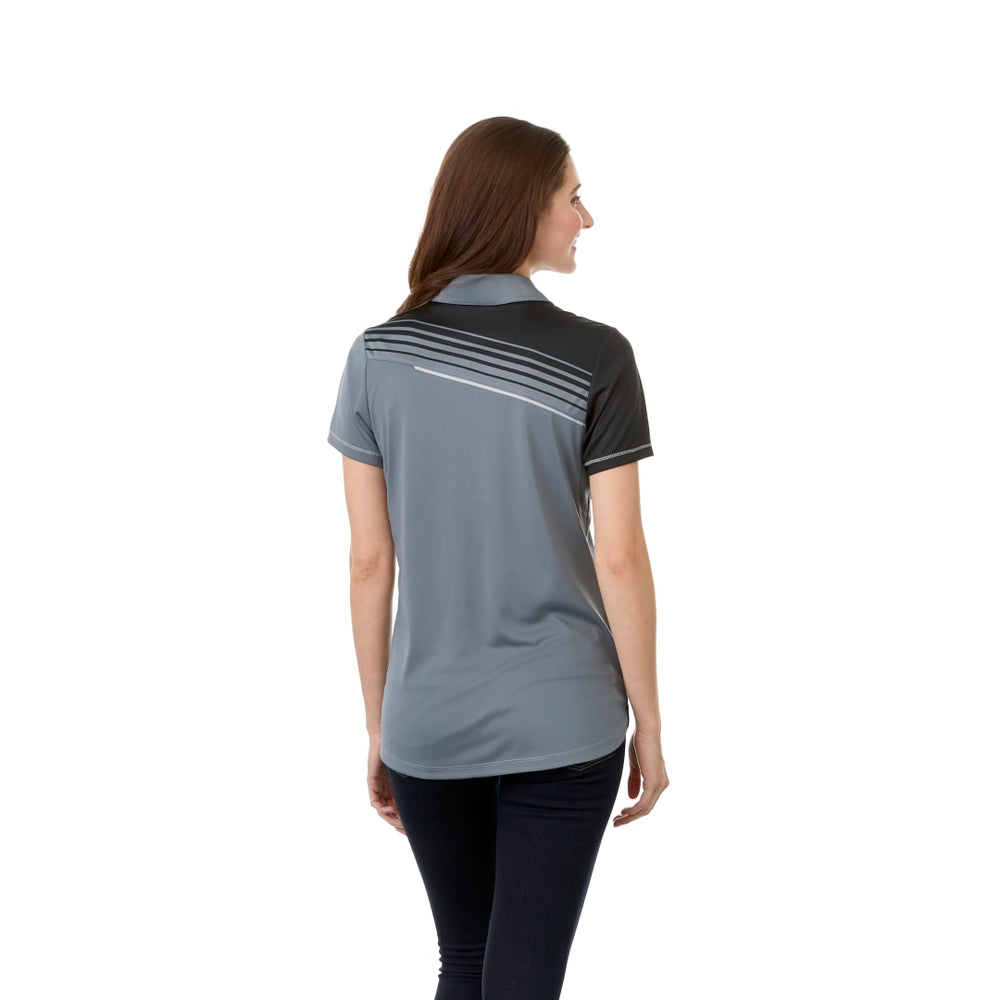 The Prater Polo combines a modern, sporty look with exceptional technical features, including wicking, breathable fabric, UV protection and snag-resistance. The mens version has a three-button placket and two-piece self-fabric collar, along with a contrast side slit detail, while the womens has a placket without buttons, a two-piece self-fabric collar and shaped side slits. Both include a reflective Elevate logo on the rear right hip.