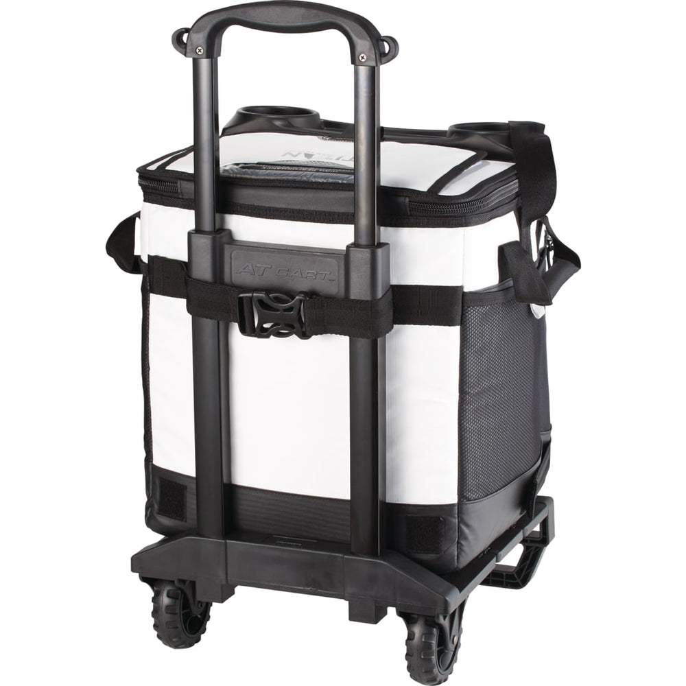 Made with Deep Freeze® high performance insulation, an integrated heat barrier and Cold Block™ base help keep still ice for 3 days! Main compartment plus front pocket hold up to 58 cans. Easy access lid, beverage station and all terrain cart with retracted, telescopic handles make this the ultimate cooler for any event.