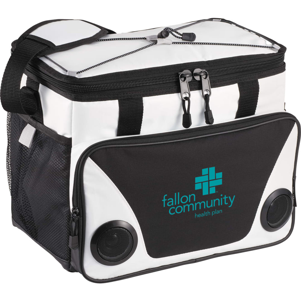 Made with Deep Freeze® high performance insulation, an integrated heat barrier and Cold Block™ base help keep still ice for 2 days! Main compartment hold up to 24 cans. Includes two mounted Bluetooth compatible speakers that work with any device with Bluetooth capability. Simply pair the speakers to your device and stream your favorite movie or music. Battery life of Bluetooth speakers lasts approx. 3-4 hours under mid-volume, or 2-3 hours under maximum volume.