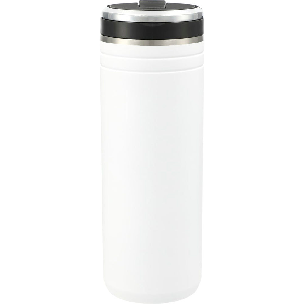 Do not miss the trendiest tumbler of the year. Durable, powder spray color. Double-wall 18/8 grade stainless steel copper vacuum construction, which allows your beverage to stay cold for up to 24 hours and at least 8 hours for hot beverages. The construction also prevents condensation on the outside of the tumbler. Easy sipping, screw-on lid with flip up straw. The intigrated metal loop built into its lid is perfect for on-the-go convenience. Wide opening for comfortable filling and pouring. FSC certified premium gift box is included. 24oz. Leeds exclusive. Note: Drinking hot beverages with the straw is not recommended. Remove lid to allow beverage to cool.