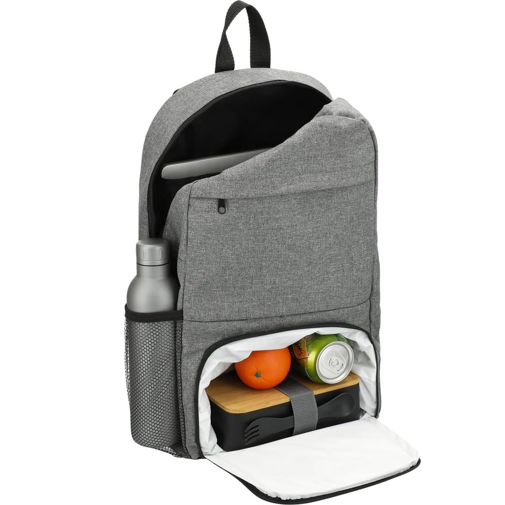 The Essential Insulated 15" Computer Backpack will be your new favorite everyday bag. The zippered main compartment is large enough to carry everyday essentials. The dedicated padded laptop sleeve offers serious laptop protection. This backpack includes an insulated compartment that's perfectly sized for a bento box or your reusable lunch containers. Always have you water bottle handy in the side pocket, and store any small accessories in the front zippered pocket. This backpack has adjustable shoulder straps and a top webbing grab handle. Inventory arriving 1/26/21