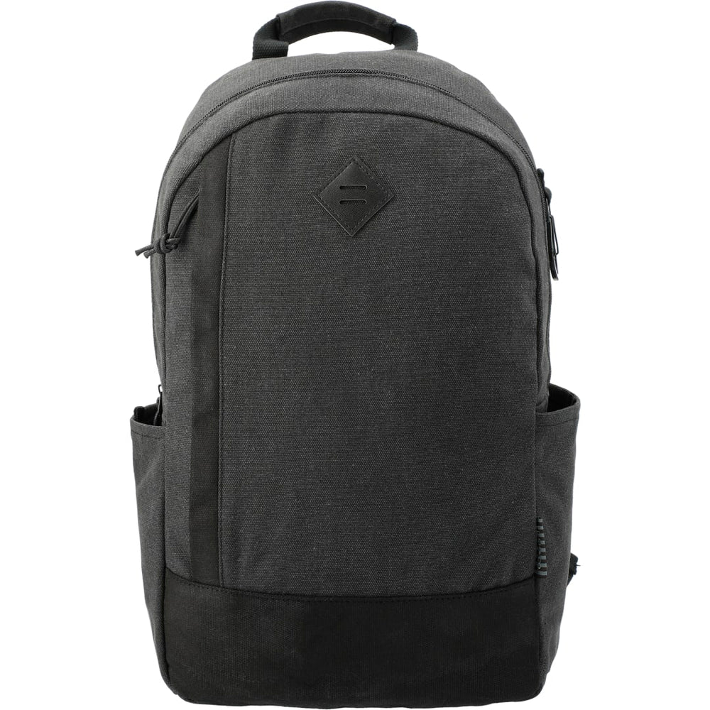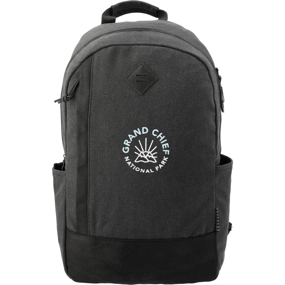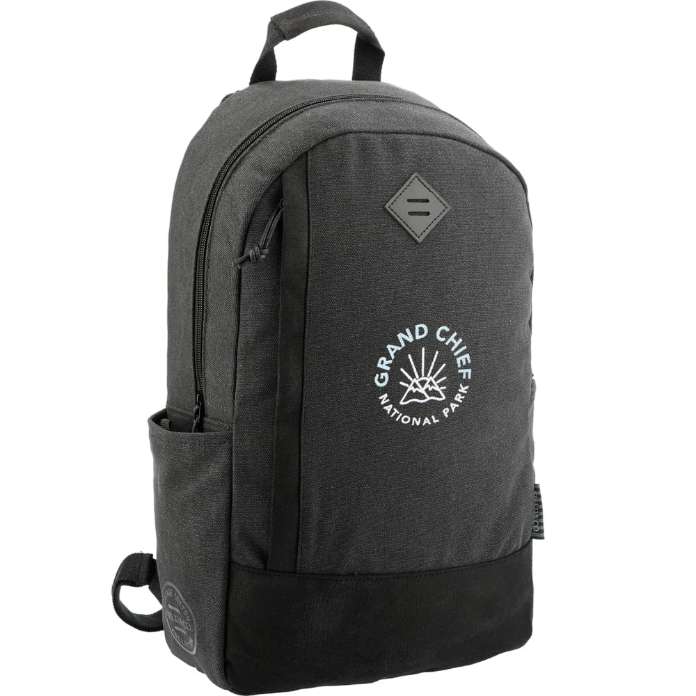 The Field & Co. Woodland 15" Computer Backpack is constructed from rugged cotton canvas, features a custom wood grain lining, and contains a padded 15" laptop sleeve inside its zippered main compartment. It also features a front zippered pocket for extra storage, a convenient water bottle sleeve, and a premium vinyl lash-tab. You can wear the backpack comfortably using its padded adjustable shoulder straps.