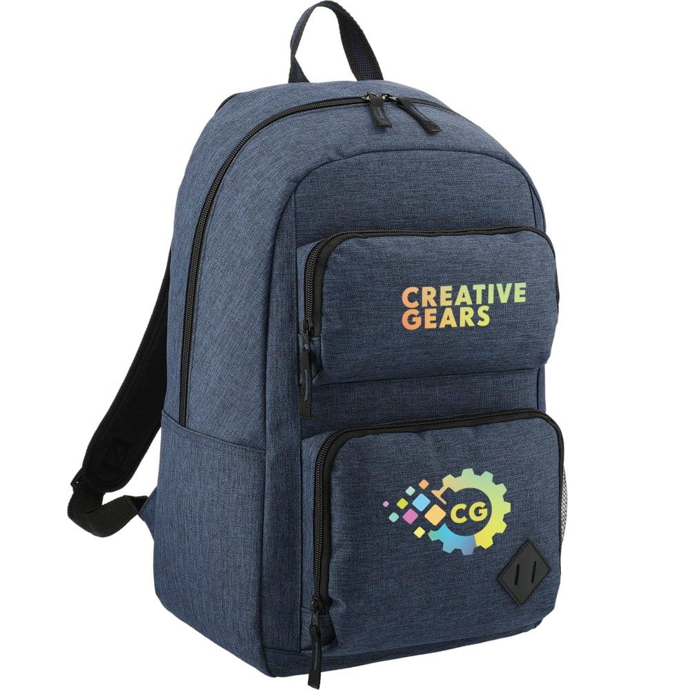 The Graphite Deluxe 15" Computer Backpack is a stylish backpack that offers on trend looks with exceptional value. Zippered main compartment with padded laptop sleeve holds up to a 15.6 inch computer, dedicated iPad®/tablet pocket with room for all your other business essentials. Two front zippered pockets are large enough for power banks, cables, pens and notecards. The two front pockets also offer flexible decorating locations. Side water bottle pocket. Top grab handle. Adjustable padded backpack straps. Disclaimer: There may be minor variations in color of the actual product due to the nature of the fabric dyes, weaves and printing.