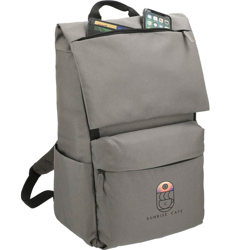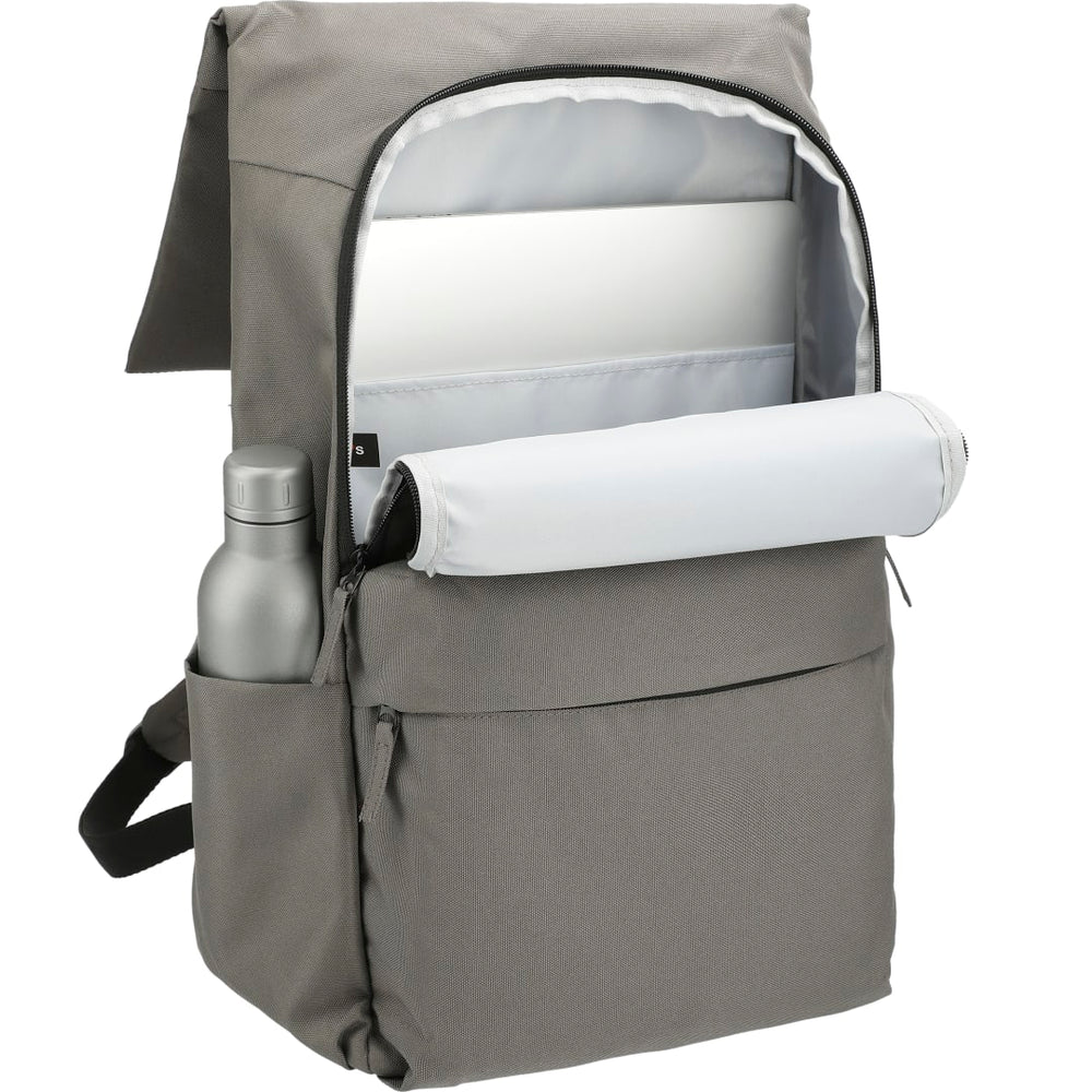 The Merritt Recycled 15” Computer Backpack is modern, on trend and offers a simple everyday carry solution. This backpack features a roomy, zippered main compartment with 15” laptop sleeve, a zippered front pocket on the top flap, as well as another zippered front pocket. Added features like a side water bottle pocket and padded shoulder straps make this a great everyday carry option. This backpack is made from recycled water bottles. Through a partnership with 1% For The Planet, one percent of sales of this and all EcoSmart products will be donated to nonprofits dedicated to protecting the planet.