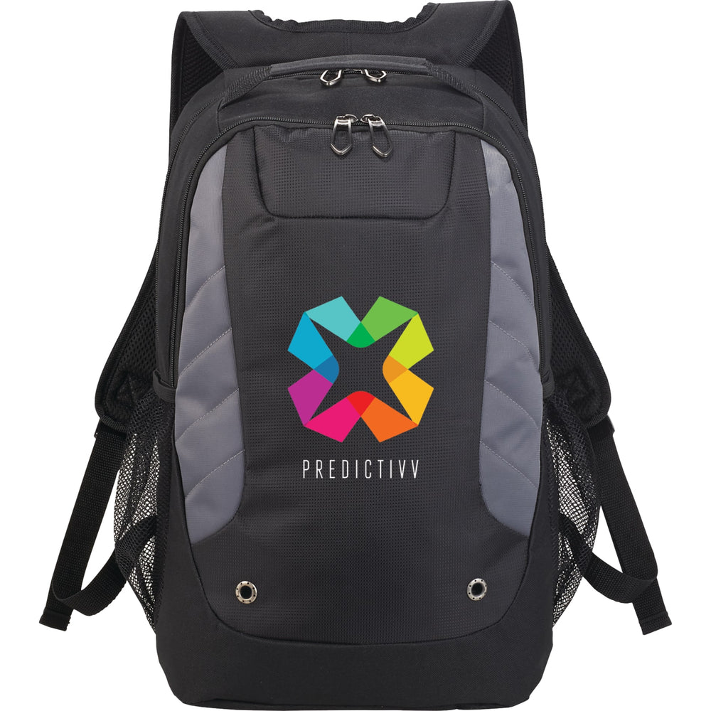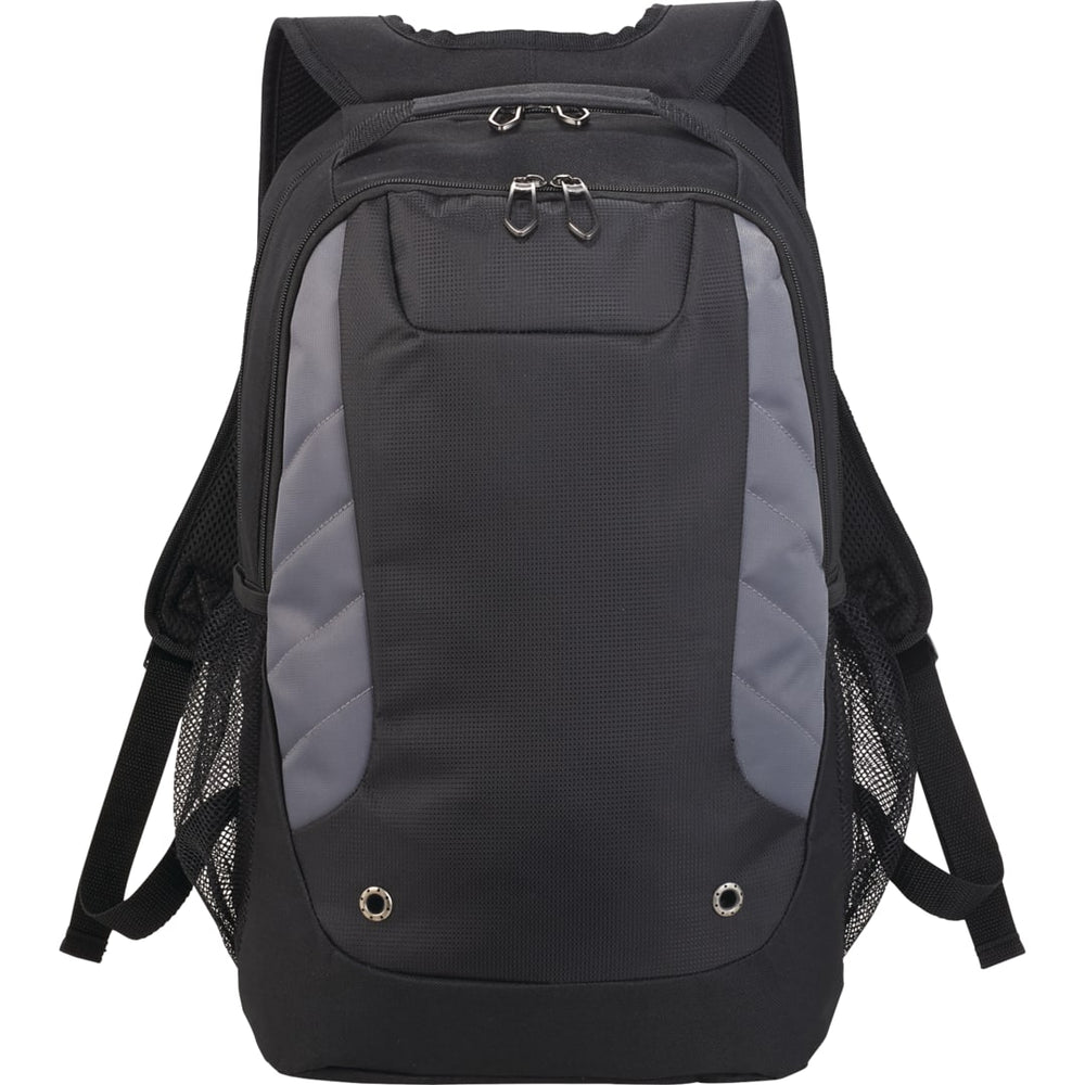 The Sanford 15" Computer Backpack features a zippered main compartment that holds up to 15 inch laptop. A mesh slash pocket on interior wall to hold all of your tech accessories, while the large zippered front compartment offers a deluxe organizational panel. The front panel is accented with grommet and stitched details. Comes with a side mesh water bottle pocket, a webbing grab handle and trolley sleeve, padded and adjustable shoulder straps and custom designed zippered pullers.