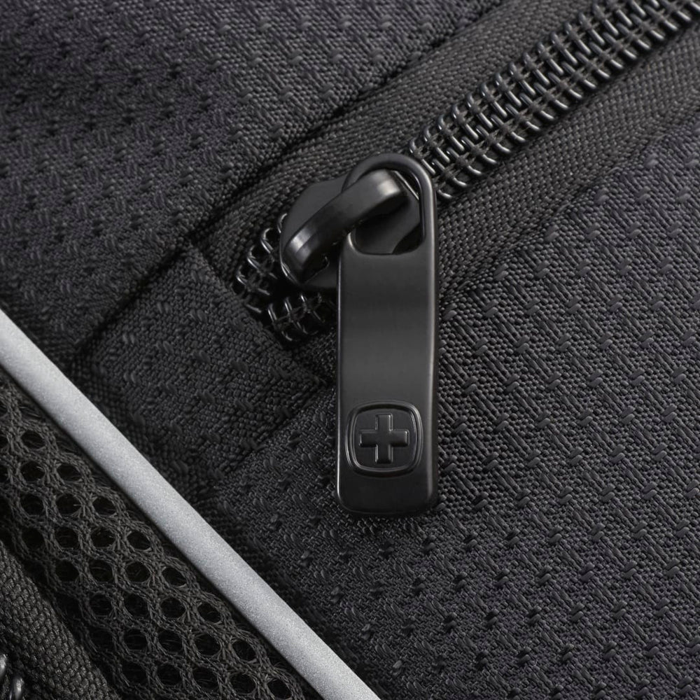 The Wenger Pro II Recycled 17" Computer Backpack combines style and luxury with sustainability. Made from eco-friendly RPET, this backpack has it all: a 17” computer sleeve, dedicated USB port with cable compartment, adjustable buckle compression straps, two side mesh water bottle pockets and a dedicated phone pocket on the shoulder strap. Organize your valuables in the easy-access, lined front pocket, the zippered mesh pocket on the interior front wall, front organizational pocket, back pocket with RFID protection or in the large zippered main compartment. This backpack features Wenger’s Airflow moisture-wicking mesh, shock absorbent backpack strap and an adjustable chest strap. Through a partnership with 1% For The Planet, one percent of sales of all EcoSmart® products are donated to environmental nonprofits.