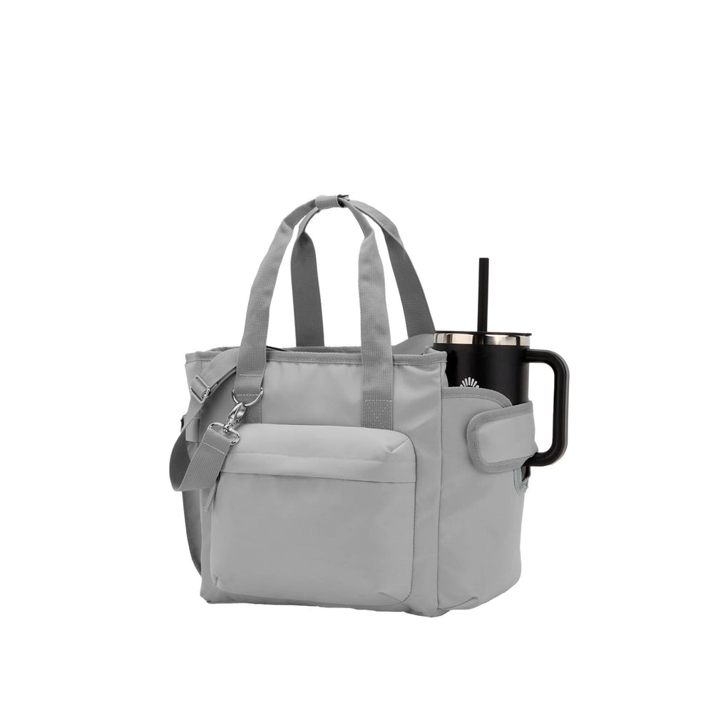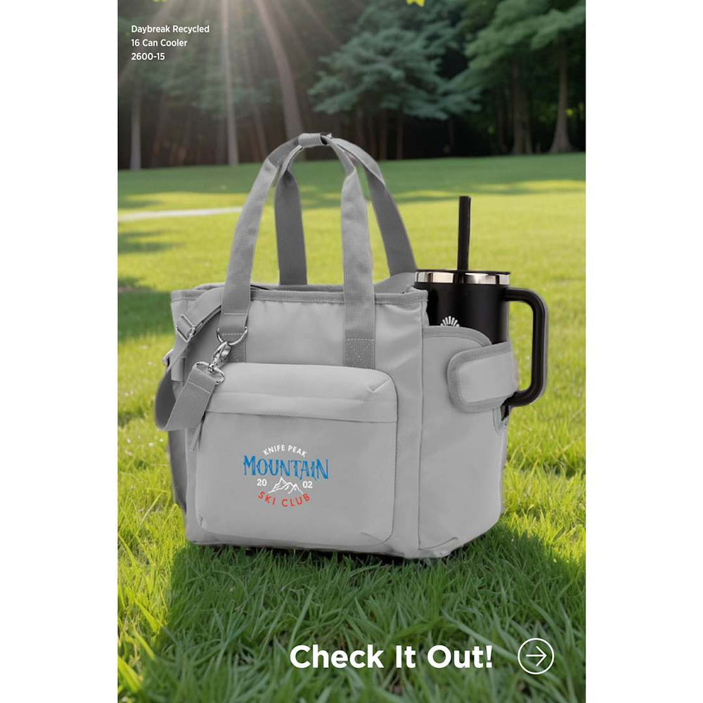 The Daybreak 16 Can Cooler features a unique exterior pocket designed to fit all drinkware, including 40oz travel tumblers with handles! Simply slide your favorite travel tumbler into the side pocket and secure it in place with the built-in hook-and-loop strap. The zip-top opening allows easy access to the items inside while the zippered front pocket provides additional storage. The adjustable crossbody strap is easily removed when not in use and the sturdy carry handles snap together for comfortable carrying.