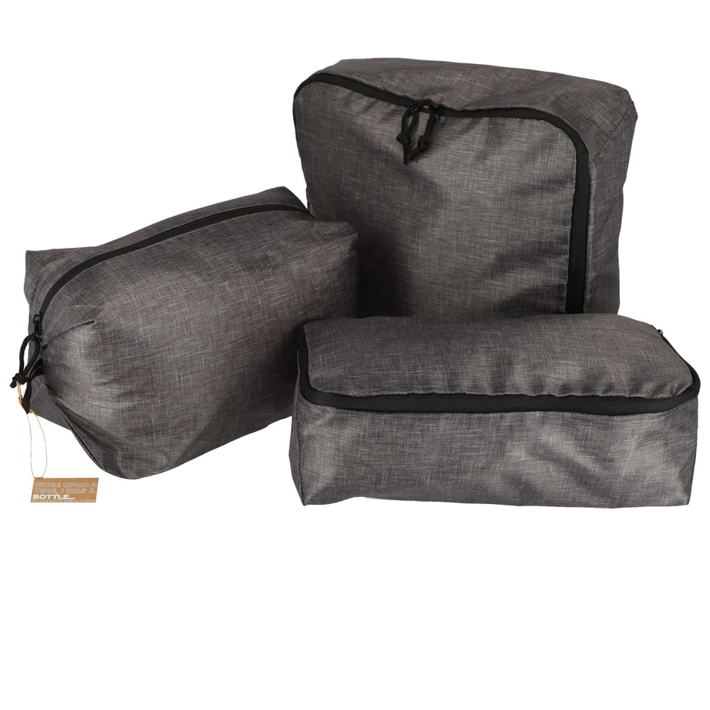 Rethink the way you travel. Be able to pack more and stay organized with Excursion packing cubes. Three-piece set includes - one large, one small (12.5"x6.75"x4.5"), and one shoe bag (12.5"x6.75"x6.75"). All three are made of durable recycled polyester material made from recycled water bottles.Through a partnership with 1% For The Planet, one percent of sales of EcoSmart products will be donated to nonprofits dedicated to protecting the planet.