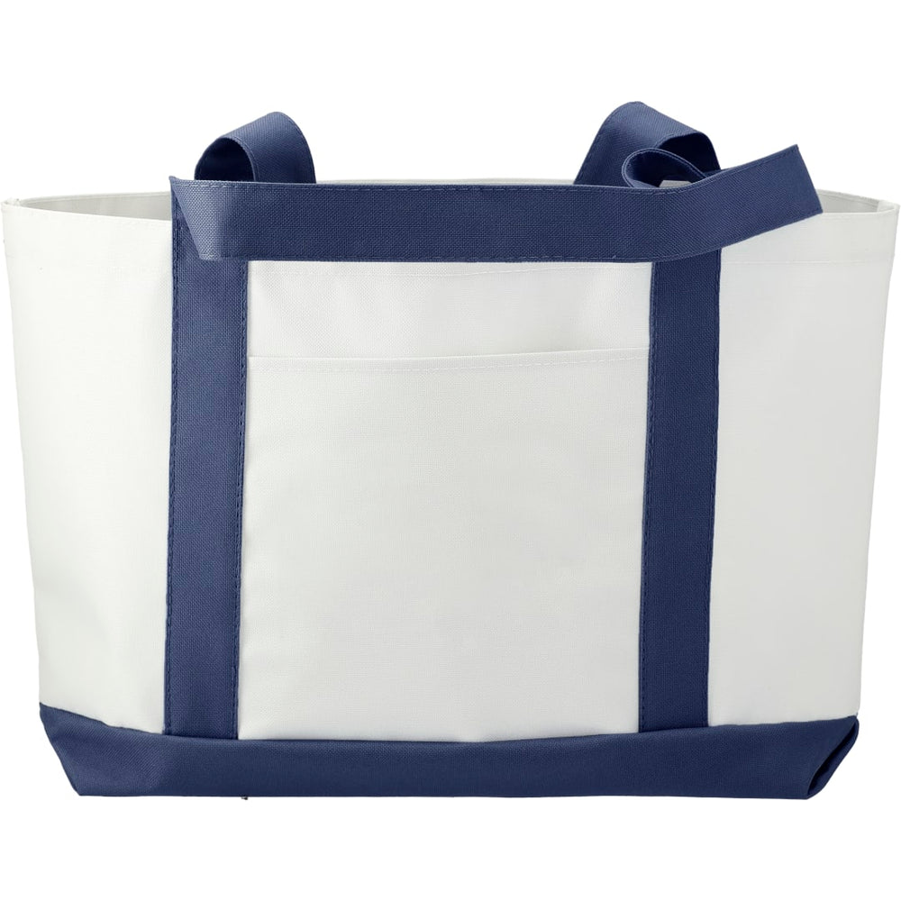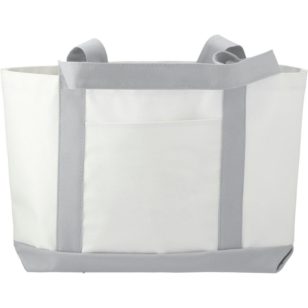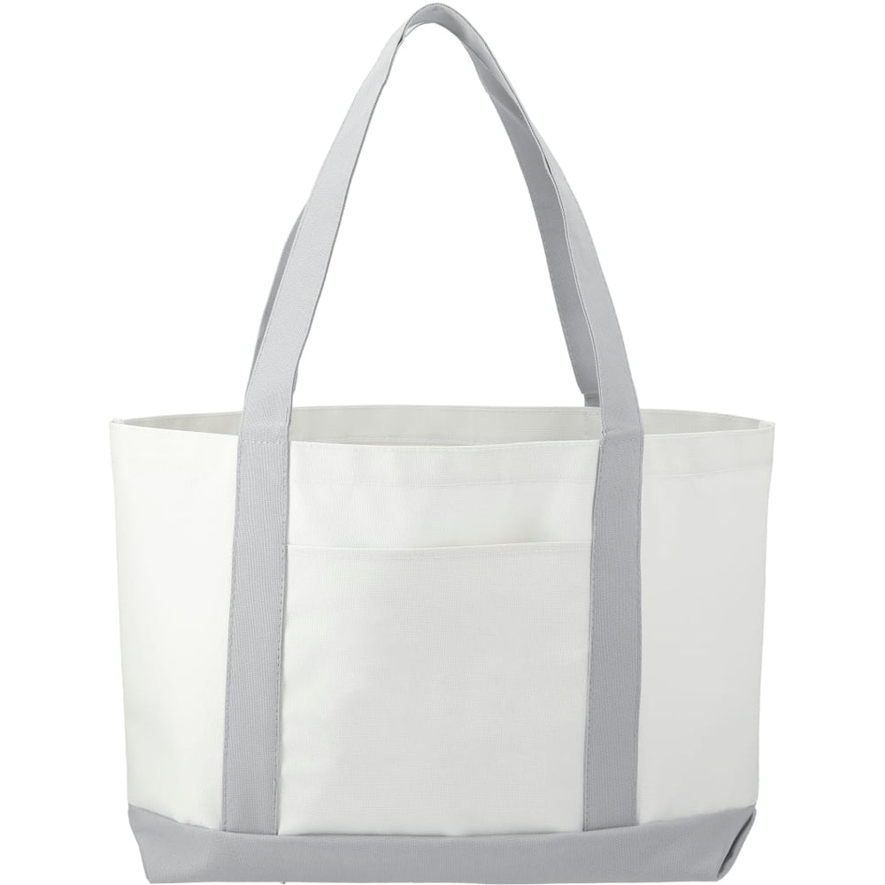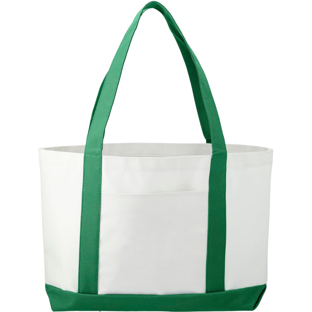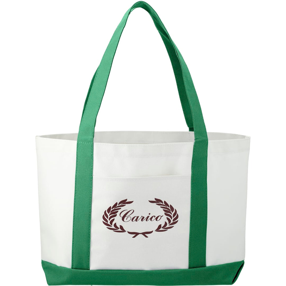 The Large Boat Tote has a large open main compartment with an open front pocket and double 23 inch handles. Disclaimer: Gusset & Handle Decorating is Transfer Only and does not qualify for one day return.