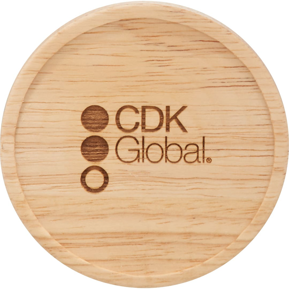 Cozy ceramic mug with matte finish body. Natural wooden lid also works as a coaster. Choose between color imprinting or our new cutting edge dishwasher safe laser decorating method. Leed's Exclusive. 15oz.