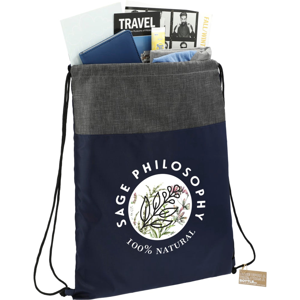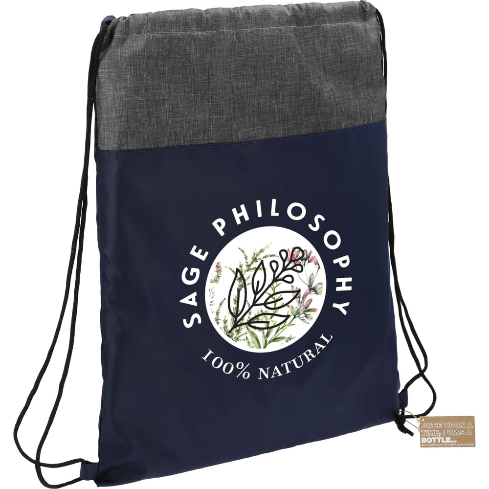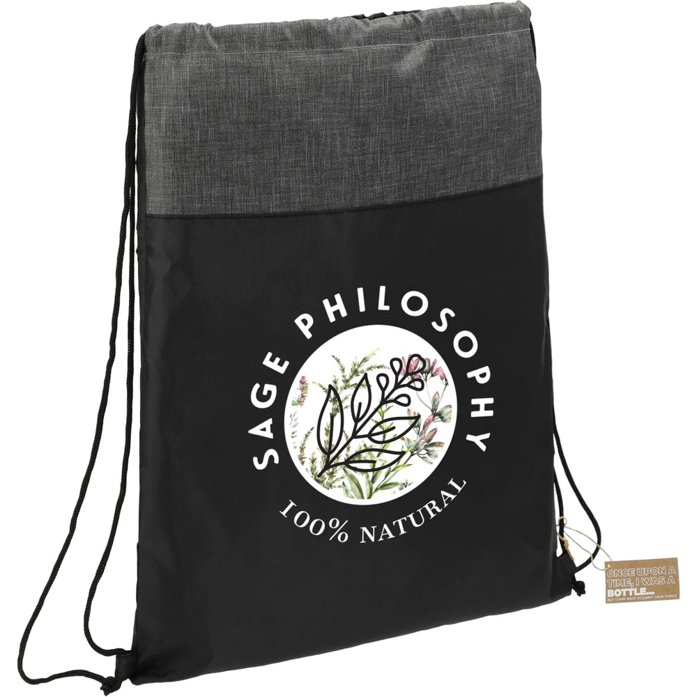 The Ash Recycled Drawstring Bag features a cinch closure and trendy graphite color blocking. This drawstring bag is made from recycled water bottles. Through a partnership with 1% For The Planet one percent of sales of this and all EcoSmart products will be donated to nonprofits dedicated to protecting the planet.