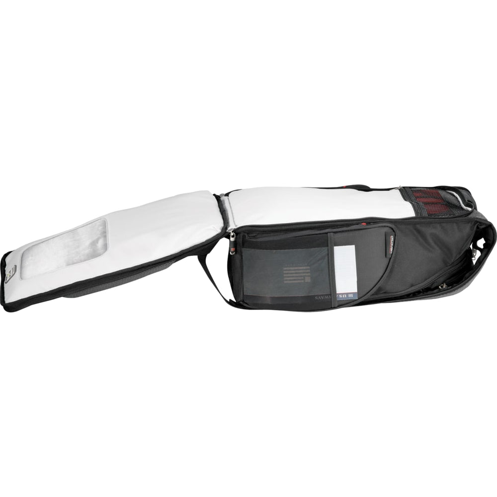 This exclusive design has a designated laptop-only section that unfolds to lay flat on the X-ray belt to increase your speed, convenience and security. Side entry laptop compartment holds up to 17" computer. Spacious main zippered compartment includes multiple slash pockets, a dedicated padded iPad pocket and removable techtrap iPad case and stand. Zippered nylex-lined pocket. Additional zippered media pocket with earbud port. Front zippered pocket with deluxe organization and key fob. Hidden pockets for valuables and easy-access pocket for tickets. Large zippered side pocket with attached ID window tag.  PEVA insulated side pocket with exterior mesh pocket. Bottle opener/key fob on strap. Yoke-style handle. Padded back and compression shoulder straps for extra comfort. Back panel designed to slip over trolley handles. Signature elleven™ lining and hardware. Free run charges for embroidery up to 10,000 stitches.