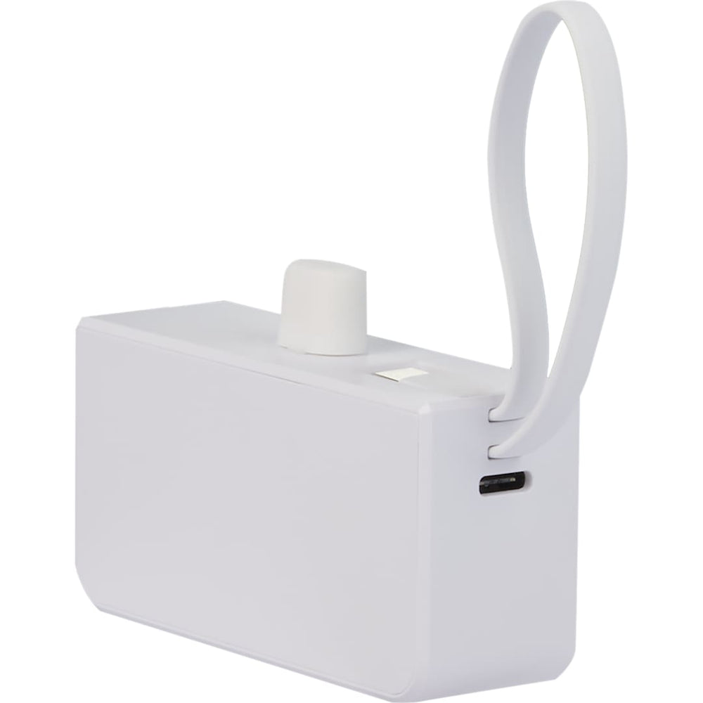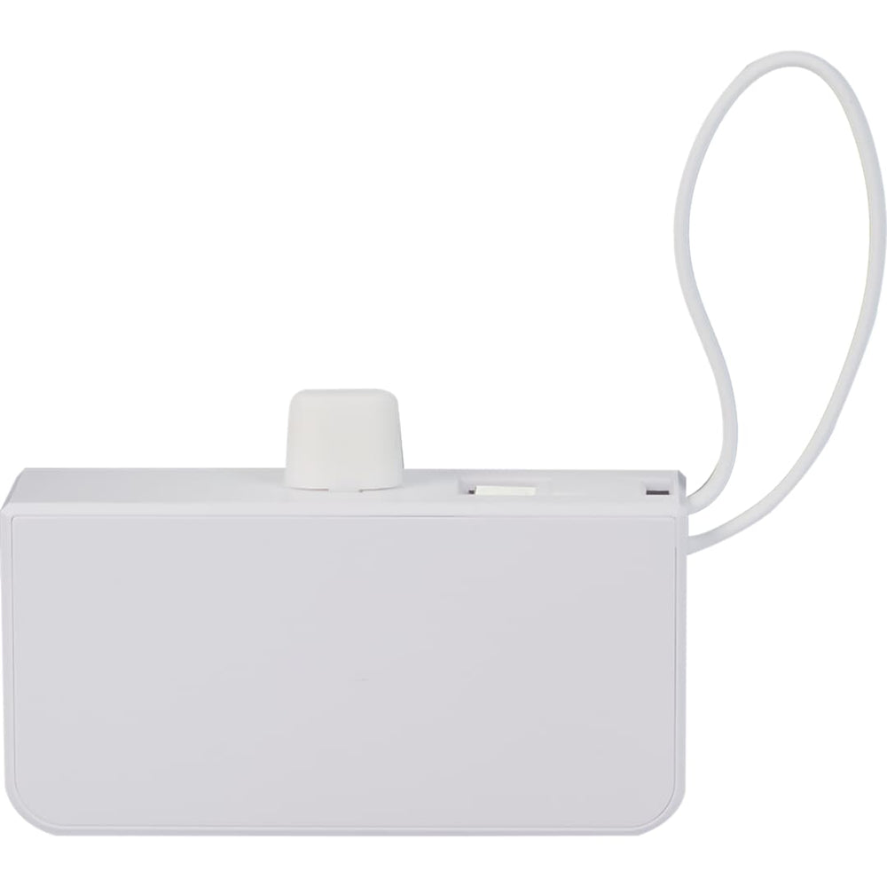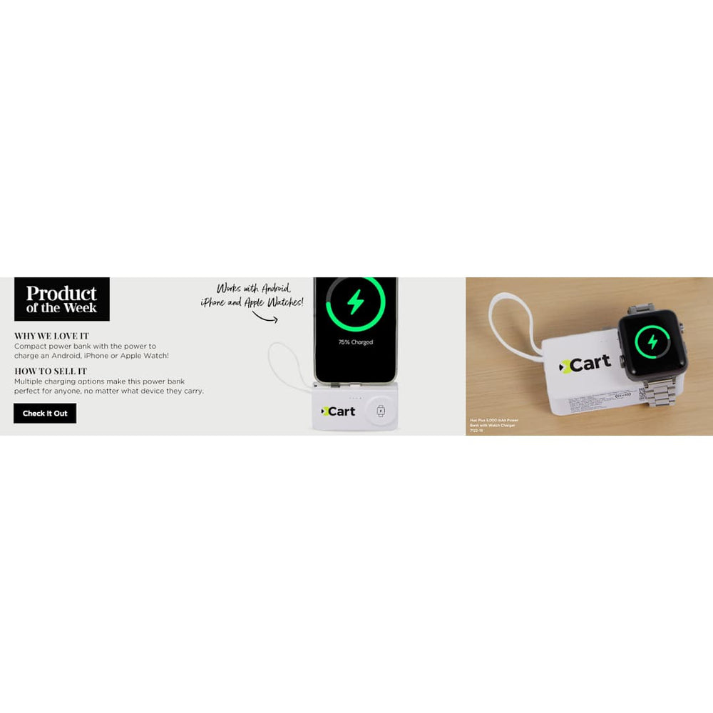 The Hue 5000 Power Bank with iWatch Charger features a 5,000 mAh/18Wh rechargeable lithium polymer battery, an integrated 5.5-inch cable with Type-C Input/Output tip as a lanyard and 2-in-1 dual compatible fixed tip for Apple® iOS devices and Android devices with Micro input. Type-C Input/Output Tip: 5V/2A (10W); Type-C Input/Output Port: 5V/2A (10W); 2-in-1 Output Tip: 5V/2A (10W). It also supports wireless charging at up to 2W for Apple Watch 1 to 10. The power bank itself can be recharged through integrated cable with Type-C tip or your own Type-C cable. Power banks are permitted in carry-on luggage only, and at the discretion of TSA agents. Please charge the power bank before initial use.