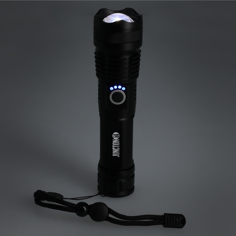 The High Sierra® 200 Lumen Recycled Rechargeable Flashlight is a powerful and eco-friendly lighting solution designed to enhance your adventures while minimizing environmental impact. With a telescopic zoom and 5 versatile lighting modes including high, medium, low, fast flashing, and slow flashing, this flashlight adapts to your needs. Say goodbye to disposable batteries as it features a user-friendly micro-USB input port and arrives with a 7.87" charging cable for convenient recharging. Crafted from recycled aluminum, it's not only durable but also embodies sustainability. Packaged thoughtfully in an environmentally-friendly FSC®-Certified natural gift box and accompanied by clear instructions, this flashlight is poised to illuminate your journeys.