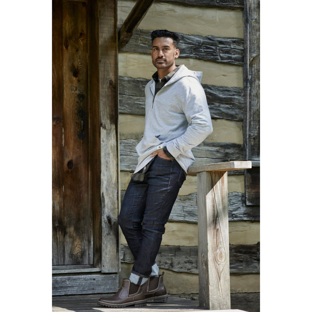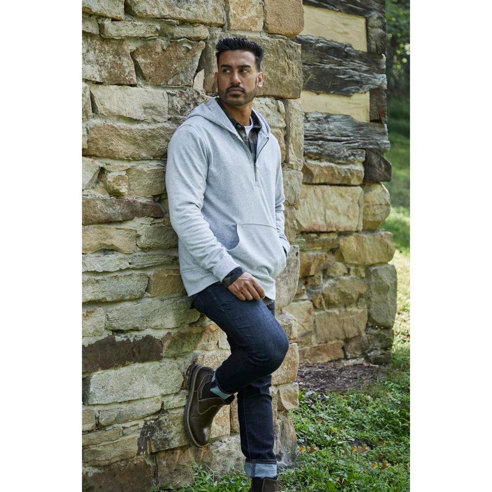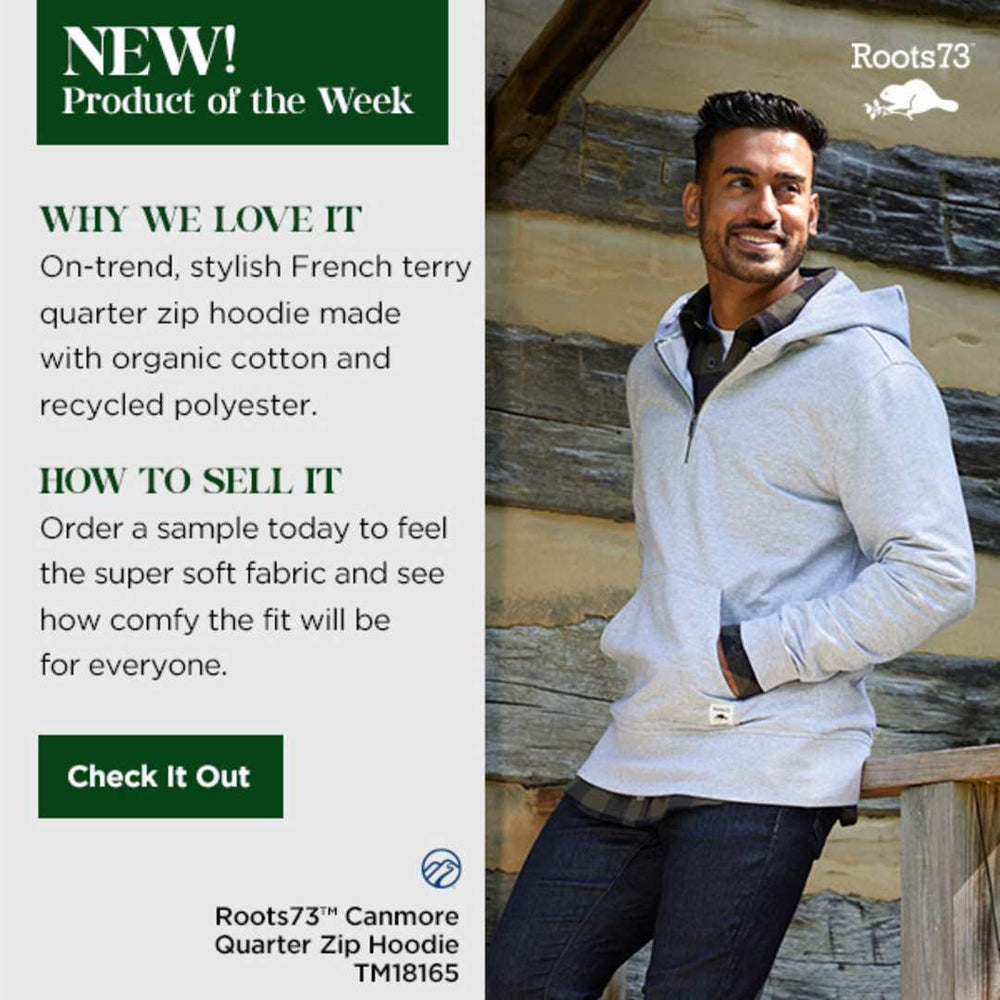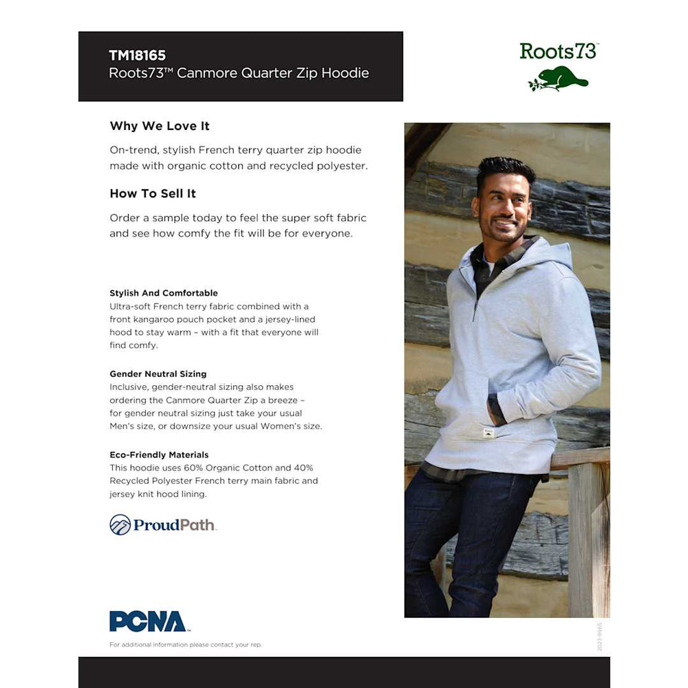 The Canmore Eco Quarter Zip Hoodie is a classic style sweatshirt. This hoodie is made with soft, cozy, french terry and a jersey-lined hood to keep you comfy and warm. This quarter zip hoodie is giving you all the style you've come to expect from the Roots73 brand. The Canmore Eco Quarter Zip Hoodie has a kangroo pouch pocket to keep you warm, a hidden pocket for your valuables, and is a must-have on any outdoor adventure. This style is in our Gender Neutral sizing and is inclusive to many demographics. One percent of all Eco sales are donated to environmental profits through a partnership with 1% For The Planet.
