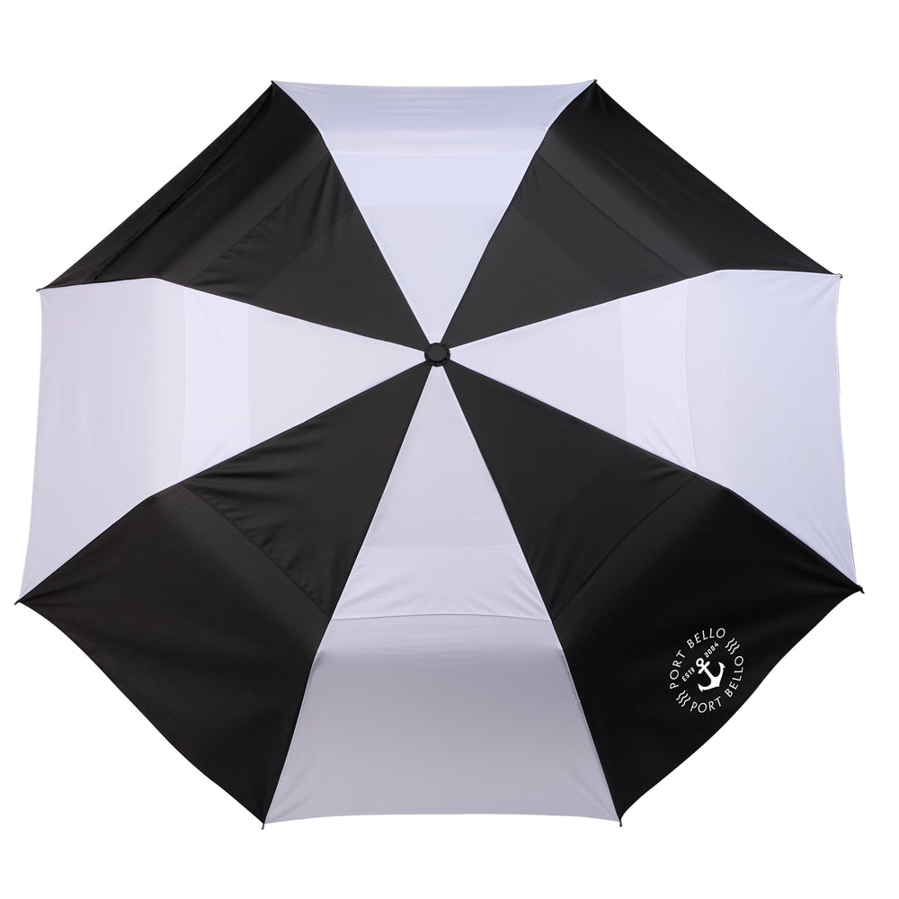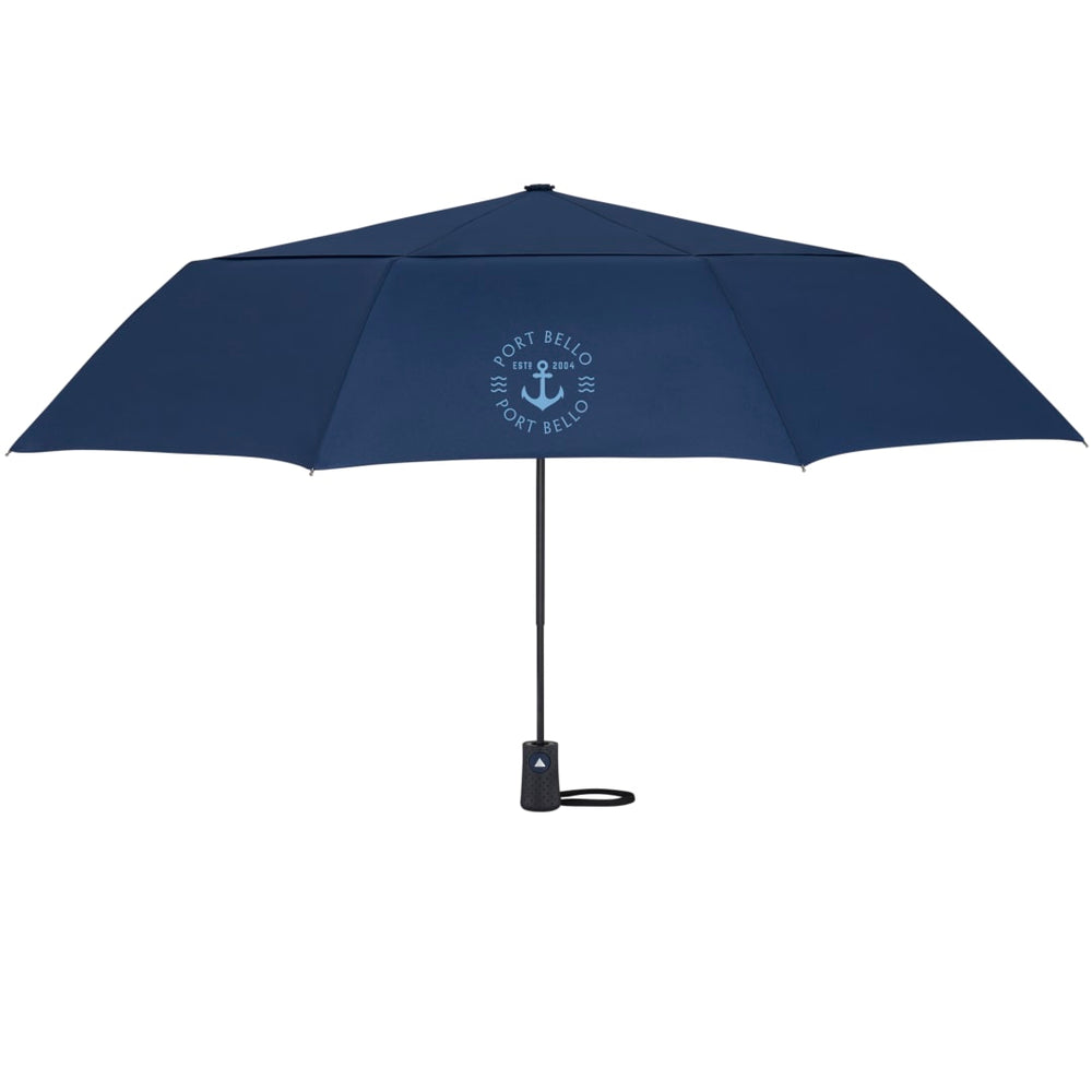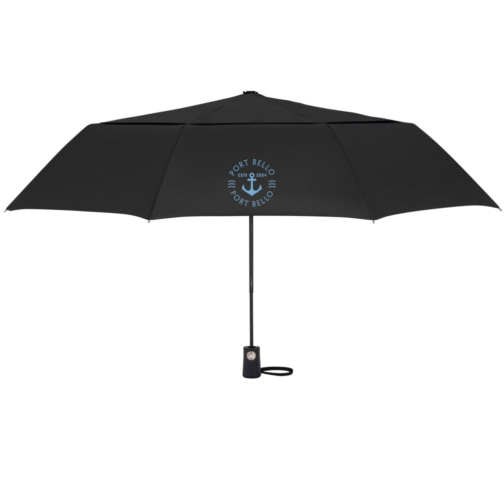 Stay dry under this eco-friendly 46" Auto Open Umbrella! This umbrella is easy to use and travel with. Made with metal and fiberglass this sturdy umbrella also features an ABS handle for extra comfort. Comes with an RPET sleeve packed in an FSC pouch. Wind rated up to 25mph.