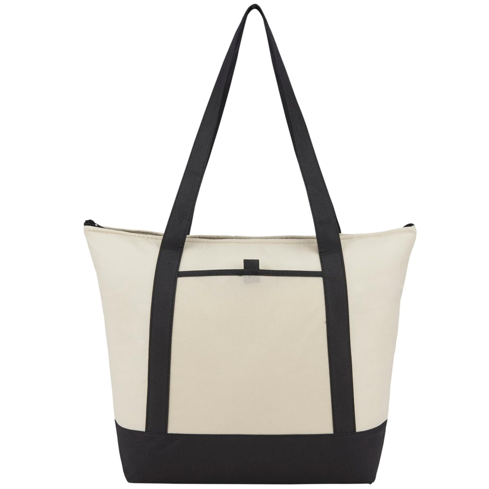 The Lighthouse 24-Can Non-Woven Boat Tote Cooler has a Zippered main compartment with double 24" handles. Open front pocket with pen loop. Foil lining.
