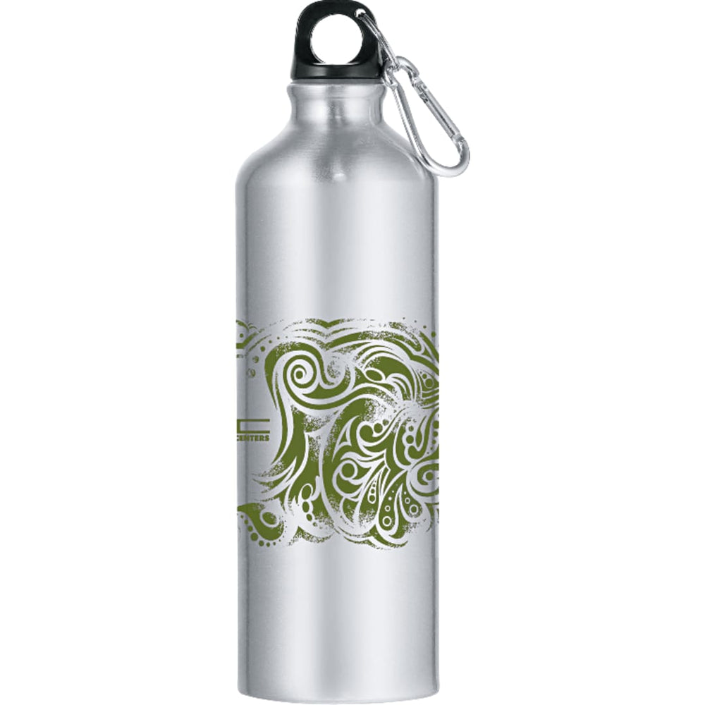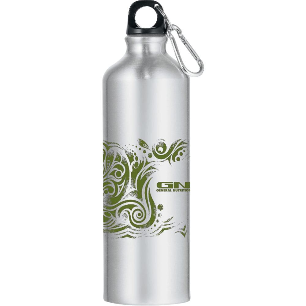 Screw-on lid. Food grade internal liner. Includes matching carabiner. BPA free. 26 oz.
