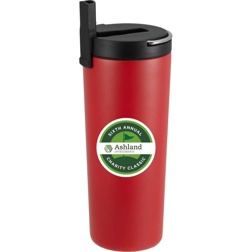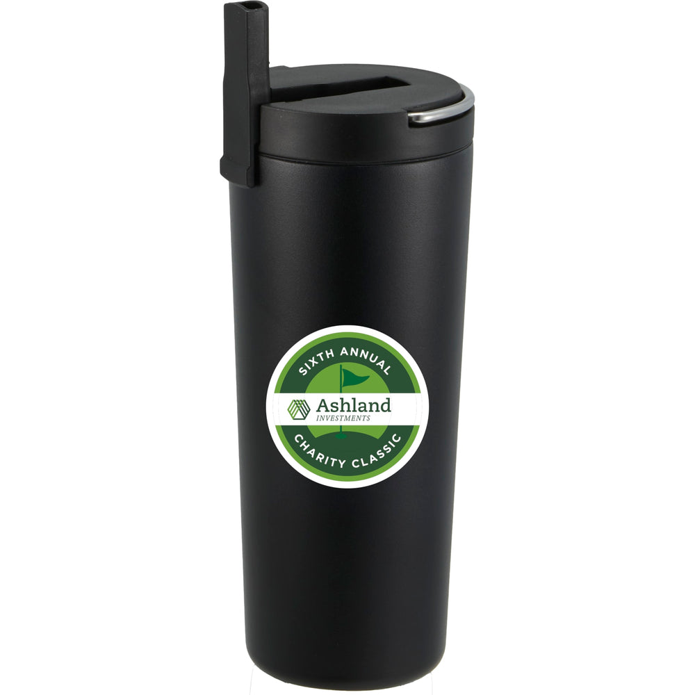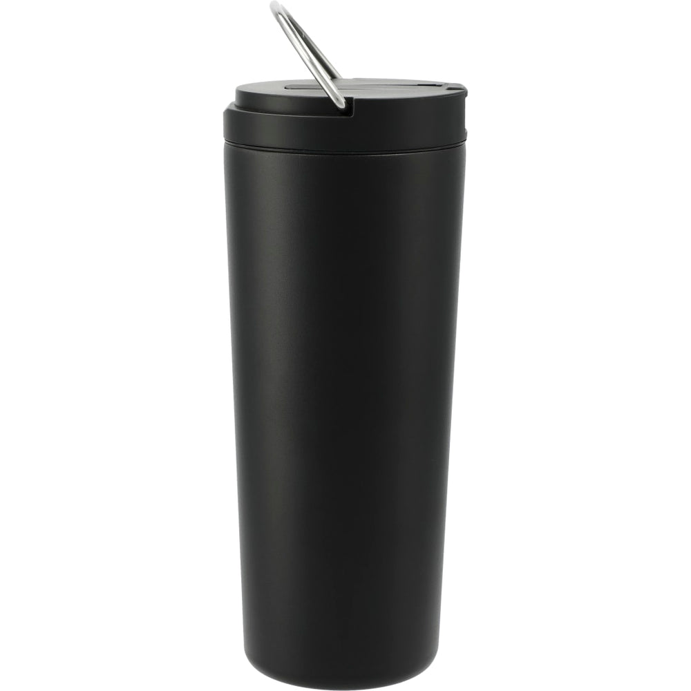 It’s here and just the right size for your daily use! Durable, double-wall stainless steel vacuum construction with copper insulation, which allows your beverage to stay cold for up to 24 hours and at least 8 hours for hot beverages. The construction also prevents condensation on the outside of the tumbler. On-trend, durable powder coating. Easy sipping, screw-on lid with pop-up straw. The intigrated metal loop built into its lid is perfect for on-the-go convenience. Wide opening for comfortable filling and pouring. Fits most car cup holders. 24oz. Leeds exclusive. Note: Drinking hot beverages with the straw is not recommended. Remove lid to allow beverage to cool.