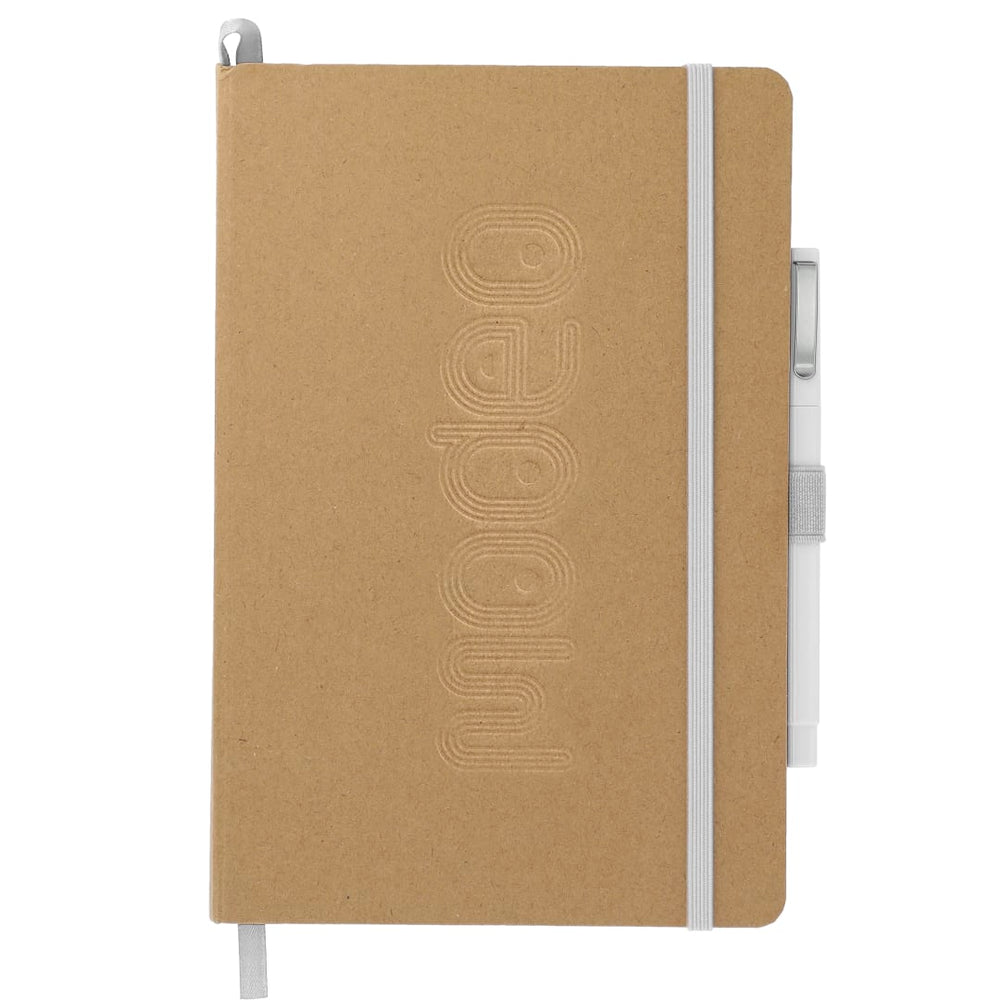 Set includes 2800-41 Eco Color Bound JournalBook and 6620-31 Ambassador Square Ballpoint. Recycled paper hard bound cover. Color accent painted edge pages. Color matching built-in elastic closure and pen loop. Ribbon page marker. Expandable accordion pocket. Includes 80 sheets of lined paper. Through a partnership with 1% For The Planet, one percent of sales of this and all EcoSmart products will be donated to nonprofits dedicated to protecting the planet. Due to the nature of the material, there may be color variances.