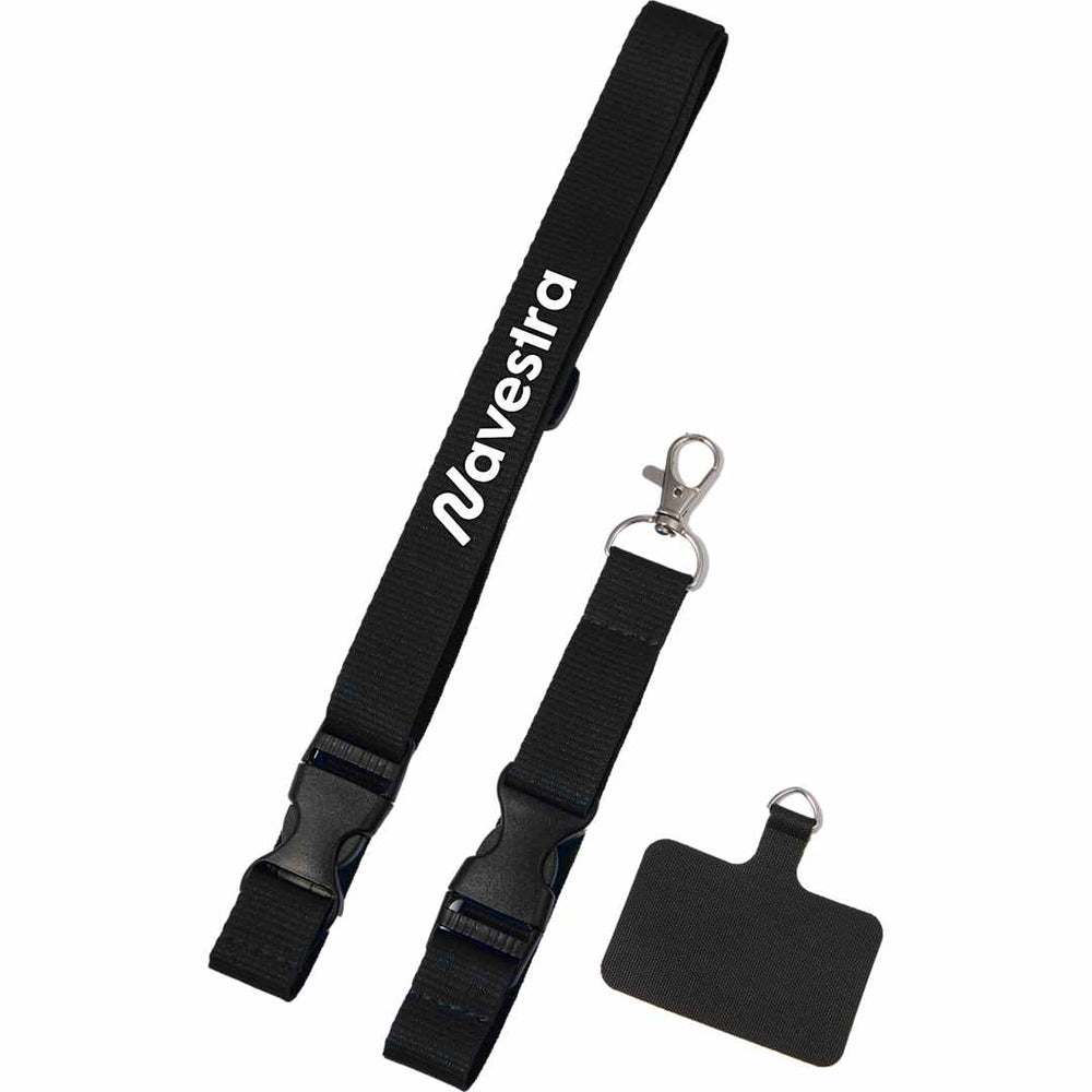 The Adjustable Recycled Phone Lanyard is a versatile accessory designed for hands-free convenience. Featuring a phone patch that easily fits between your phone and phone case, it provides secure, easy access to your device while on the go. The adjustable clip allows you to customize the lanyard to your preferred length, while two buckle clips enable it to double as a wrist lanyard for added flexibility. Made from recycled PET materials. Through a partnership with 1% For The Planet, one percent of sales from this lanyard is donated to environmental nonprofits, helping protect the planet with every purchase.