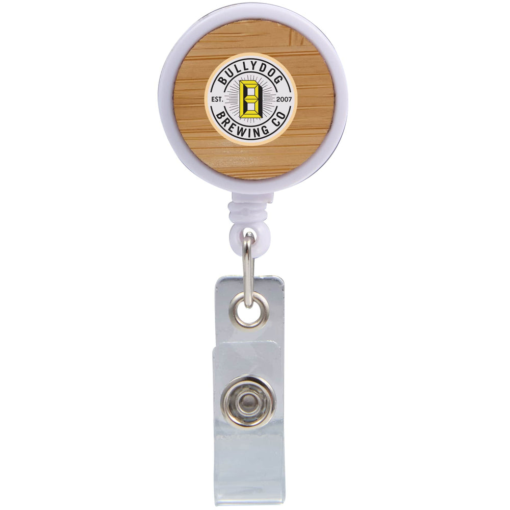 The Bamboo Badge Holder is a stylish and functional accessory, ideal for employee badges or use at tradeshows. Crafted with a bamboo face, this badge holder combines natural aesthetics with practicality. The retractable cord allows for quick and easy access to your badge, while the secure button closure keeps it in place. A belt clip on the back ensures it stays securely attached throughout the day, making it a reliable choice for any setting.
