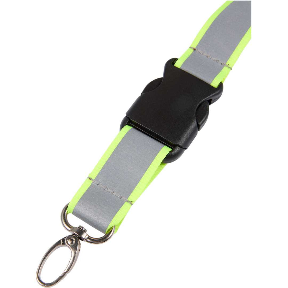The Recycled Polyester Reflective Lanyard is all about safety first! This lanyard uses reflective tape the entire length which is attached to recycled polyester. It also includes a breakaway neck clip and detachable clip for easy access to use of keys or badges. The metal clip is a classic hook style and this lanyard measures 1 inch wide and 21 inches long.