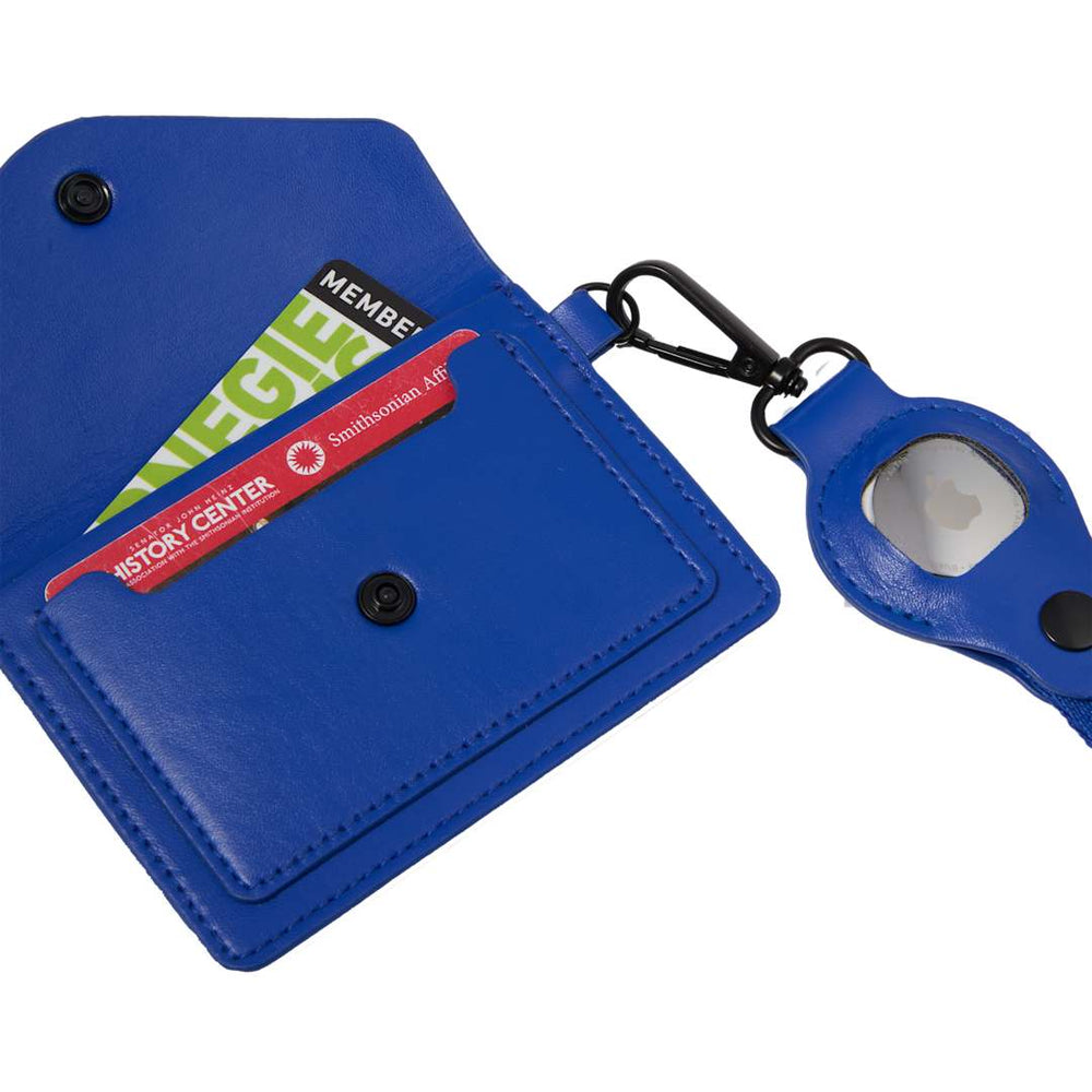 The Recycled Wrist Lanyard with Card Holder is a minimalist and versatile accessory that is super functional. Featuring a PU pocket designed for your AirTag and a two-pocket card holder with secure button closures, this lanyard keeps your essentials organized and within reach. The wrist lanyard includes an oval-shaped hook and flat weave design, measuring 6.5" x 0.75", making it a compact and stylish choice for everyday use.