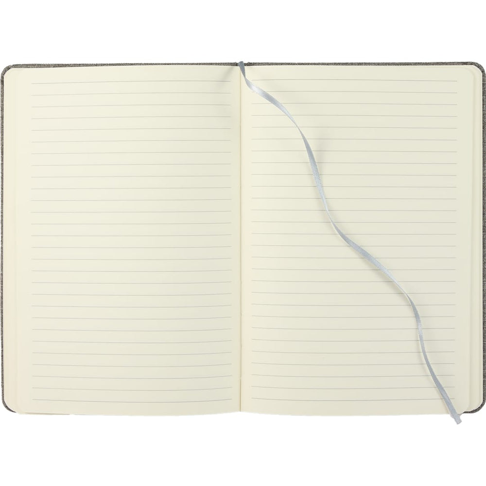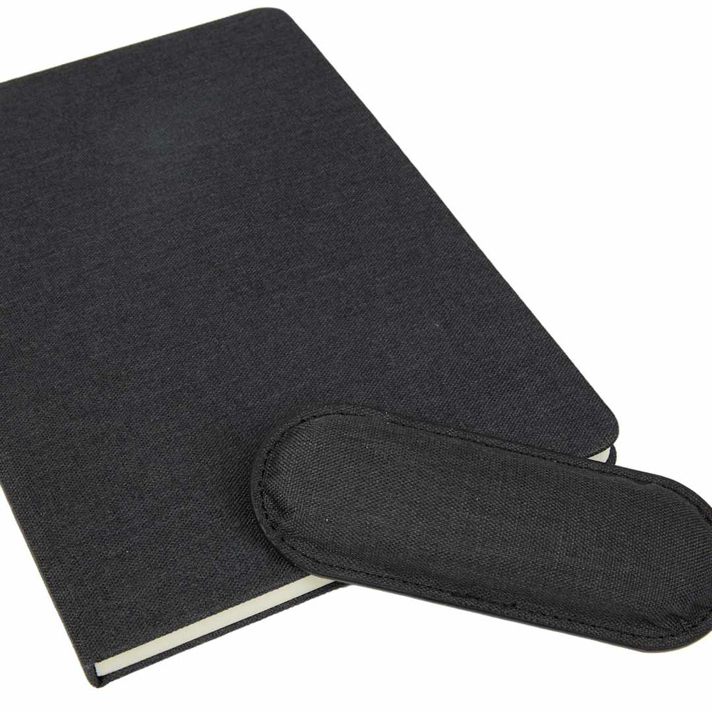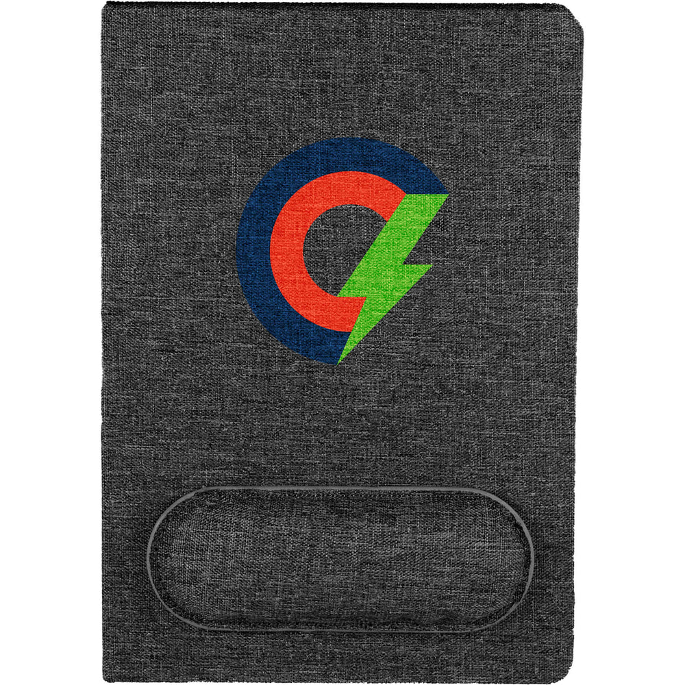 The 5.5" x 8.5" FSC® Recycled Mouse Pad Bound Notebook is the ideal addition to your workday, blending comfort and functionality. Featuring a 100% recycled PET fabric cover, this notebook includes a unique matching magnetized wrist pad for comfortable scrolling. Inside, you’ll find 80 sheets of FSC® recycled lined cream paper, perfect for eco-conscious note-taking. A grey ribbon page marker adds functionality, helping you keep track of important notes. By choosing this notebook, you’re making a positive impact on the environment through a partnership with 1% For The Planet, as a portion of each sale supports environmental nonprofits.
