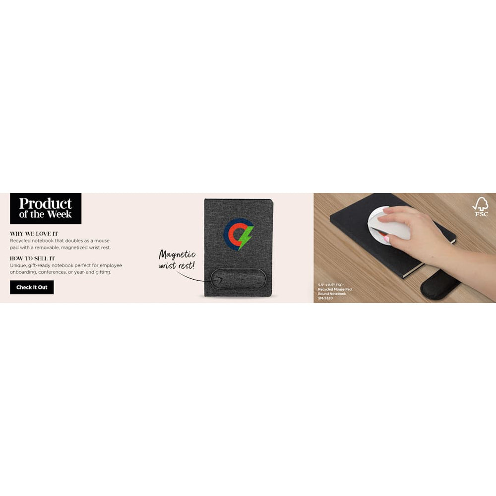 5.5" x 8.5" FSC® Recycled Mouse Pad Bound Notebook