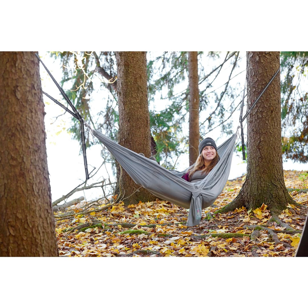 This High Sierra packable hammock is a two-person, 500lb capacity hammock made of parachute-grade 210T nylon material. Also included are tree-friendly, easy-to-use hanging straps that don't require the user to tie a knot, and have 5 adjustable hanging positions using loops and steel carabiners. Hammock opens to 55"x105", but easily folds down small enough to fit in most bags and weighs just 1.7lbs.