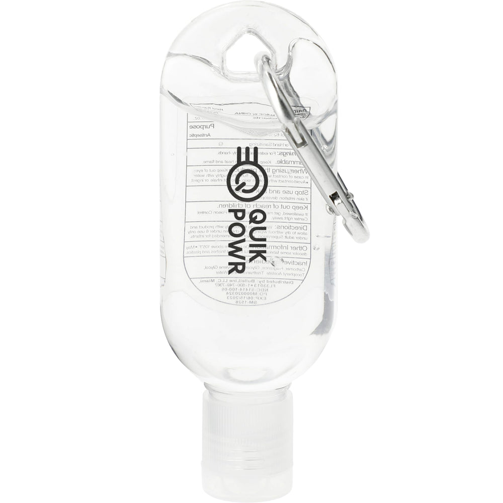 The 1oz Clip-N-Go Hand Sanitizer is an alcohol-based, 1 ounce (30ml) hand sanitizer in a tottle bottle with a flip-top lid and a 62% alcohol content. It includes a metal mini-carabiner that matches the lid color. Meets FDA requirements and is available for shipment in contiguous US only (shipping to Alaska, Hawaii & Puerto Rico NOT available). See General Information page for additional air shipment charges. Multi-color decoration available.