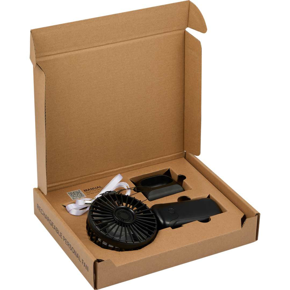 Stay cool wherever you go with the Rechargeable 100% RABS Personal LED Fan, a versatile and portable companion for on-the-go comfort. Featuring a digital display screen, breakaway neck rope, and a phone holder built into the base, this fan offers convenience and functionality. With three wind speed options and a foldable design, it’s perfect for use on your desk or while traveling. Rechargeable via the included Type-C cable, this fan ensures lasting performance. Comes packaged in a FSC® Mix giftbox. By choosing this product, you're making a positive impact on the environment, as one percent of sales are donated to environmental nonprofits through a partnership with 1% For The Planet.