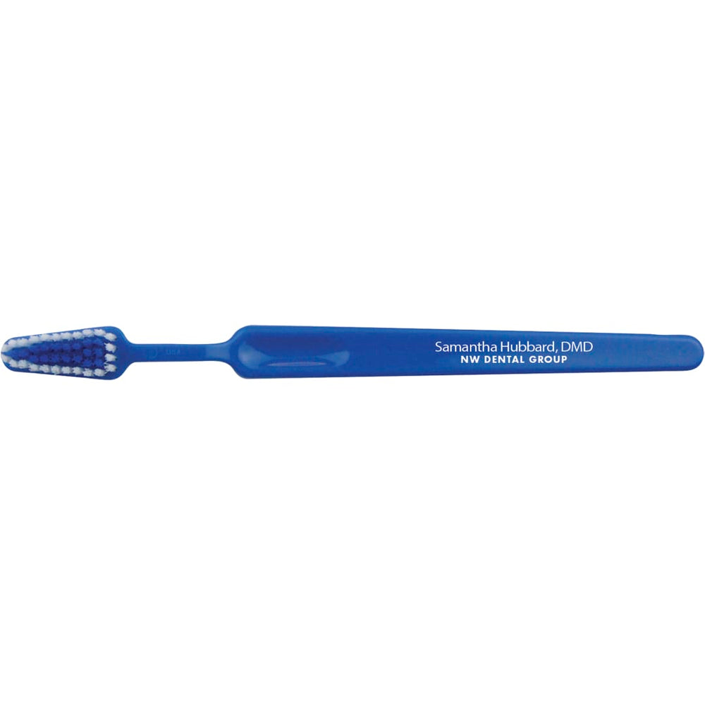 The Signature Soft Toothbrush is a high-quality, adult-sized toothbrush with soft bristles, plus matching inner bristles and body colors. It's also made in the USA. Optional matching toothbrush travel caps available at $0.20(G) each and are packed separately. This product meets FDA requirements and is only available for shipment within the United States (including Alaska, Hawaii & Puerto Rico). Less than minimum orders are not available. FOB ZIP: WI, 54703.