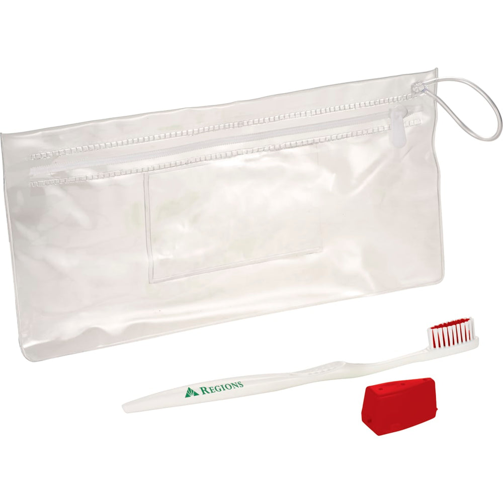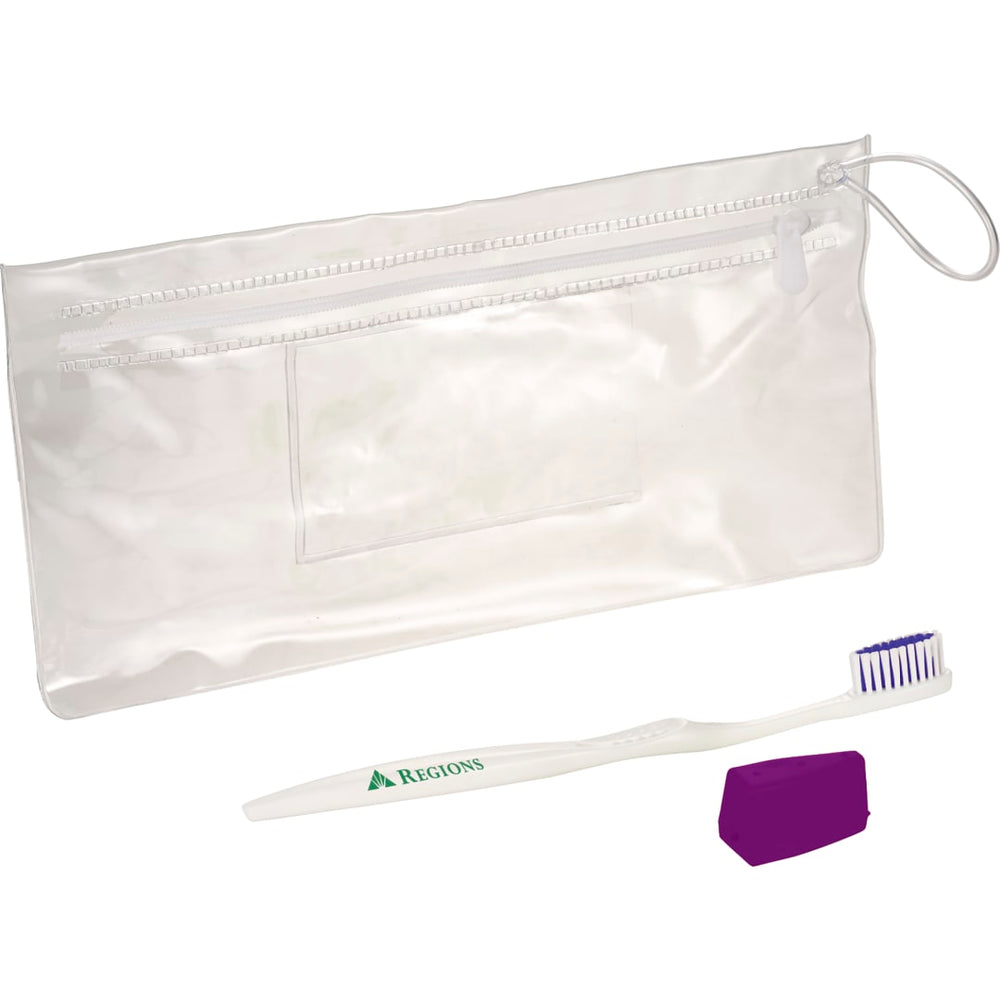 The Value Adult Wellness 3-Piece Kit is packed in a clear resealable zipper pouch with a business card pocket on back. Each kit contains: 1 (white) Concept Curve Adult toothbrush (SM-1619) and a matching travel cap. Optional 1-color imprint decoration also available on the pouch. This toothbrush is made in the USA and meets FDA requirements. Only available for shipment within the United States and Canada (including Alaska, Hawaii & Puerto Rico). Less Than Minimum orders are not available. FOB ZIP: WI, 54703