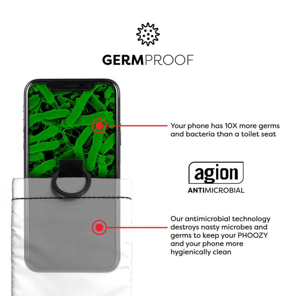 The Phoozy Apollo II with Antimicrobial is climate-proof, germ-proof, drop-proof and sink-proof. As Seen on Shark Tank, the Apollo II + Antimicrobial Series Thermal Capsule is a powerful germ-fighting phone case that protects your phone against extreme cold and heat, extends battery life, provides 8' of drop protection and yes, it floats! The included split ring/keyring easily attaches your Phoozy to your keys, FOB or lanyard. The interior dimensions of the Phoozy are 6.5" x 0.40" x 3.6", making it compatible with iPhone 8+/XR/XSMax/11/11ProMax/12ProMax /13Pro/13ProMax, Galaxy S9+/S10+/S20+/S20Ultra/ZFold/A71, Note 9/10/20, Pixel 2XL/3XL/4XL and most large phones.