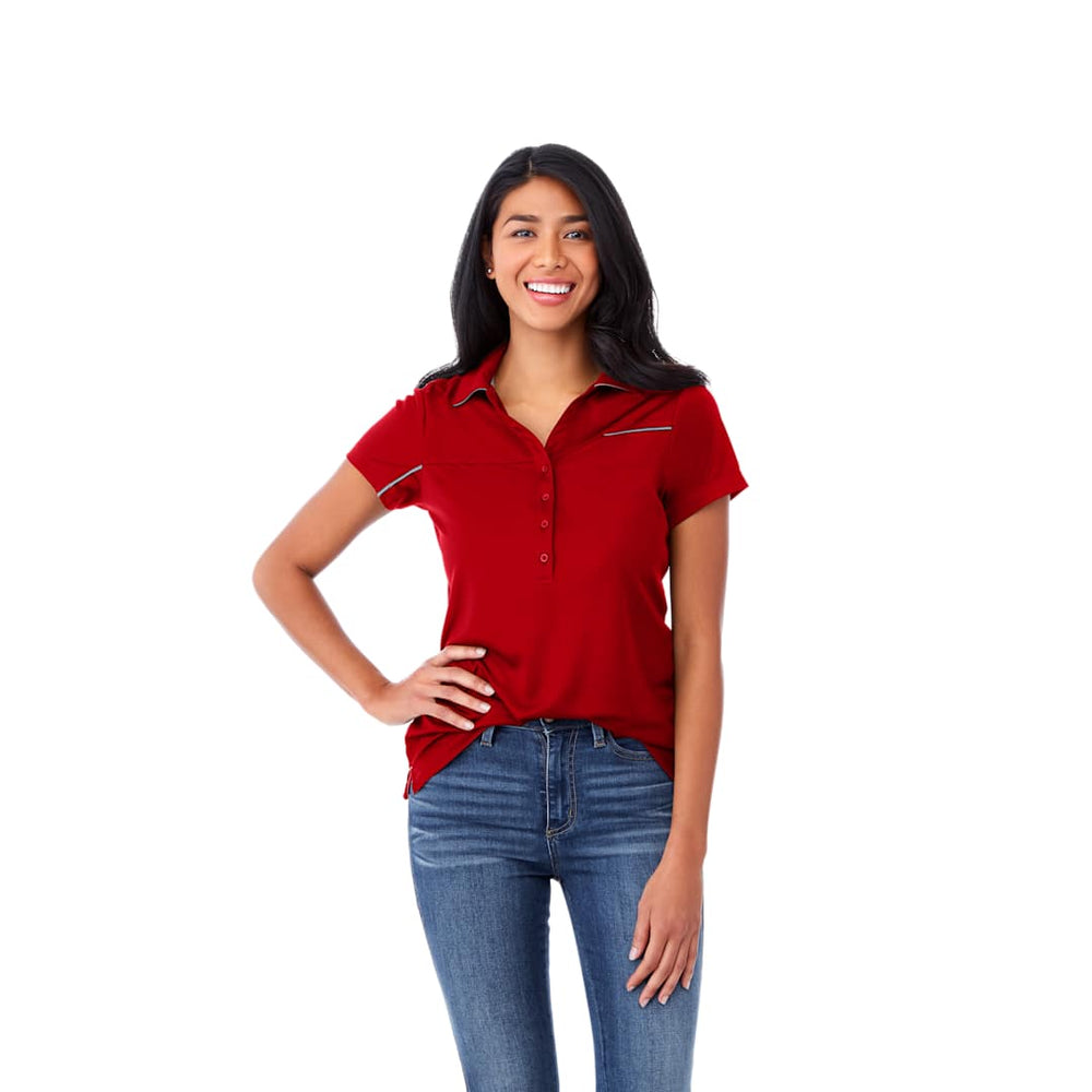 The Wilcox features eye-catching asymmetrical details that naturally draw attention to your logo. Made with moisture wicking and breathable polyester, its snag resistant, offers UV protection and has a tagless heat transfer label.
