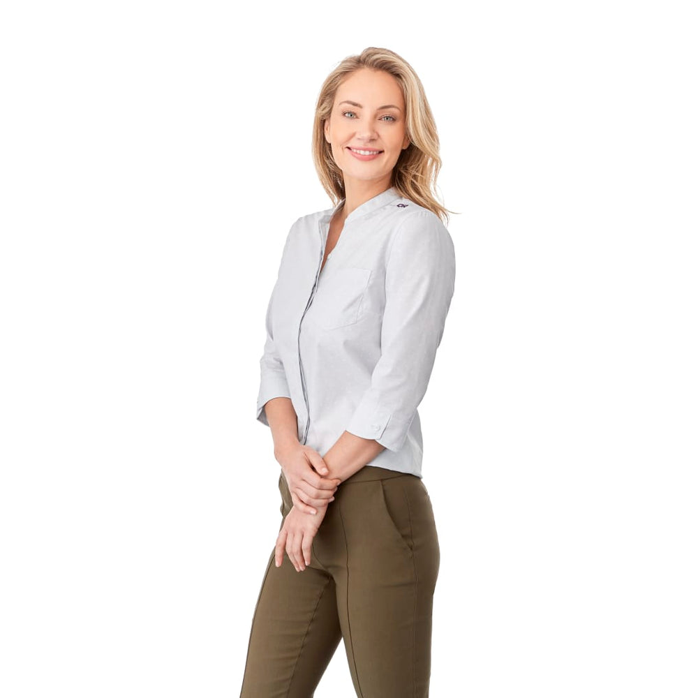 With its distinctive bold-dot pattern, the Huntington can be dressed up or worn as in as a relaxed look that sets it apart from traditional business attire. While the men's style has a hidden button-down collar, the women's has a mandarin collar with three-quarter length sleeves. Both are 100% cotton, wrinkle-resistant and designed for wash-and-wear convenience. An urban professional look, but branded apparel you'll love to wear.