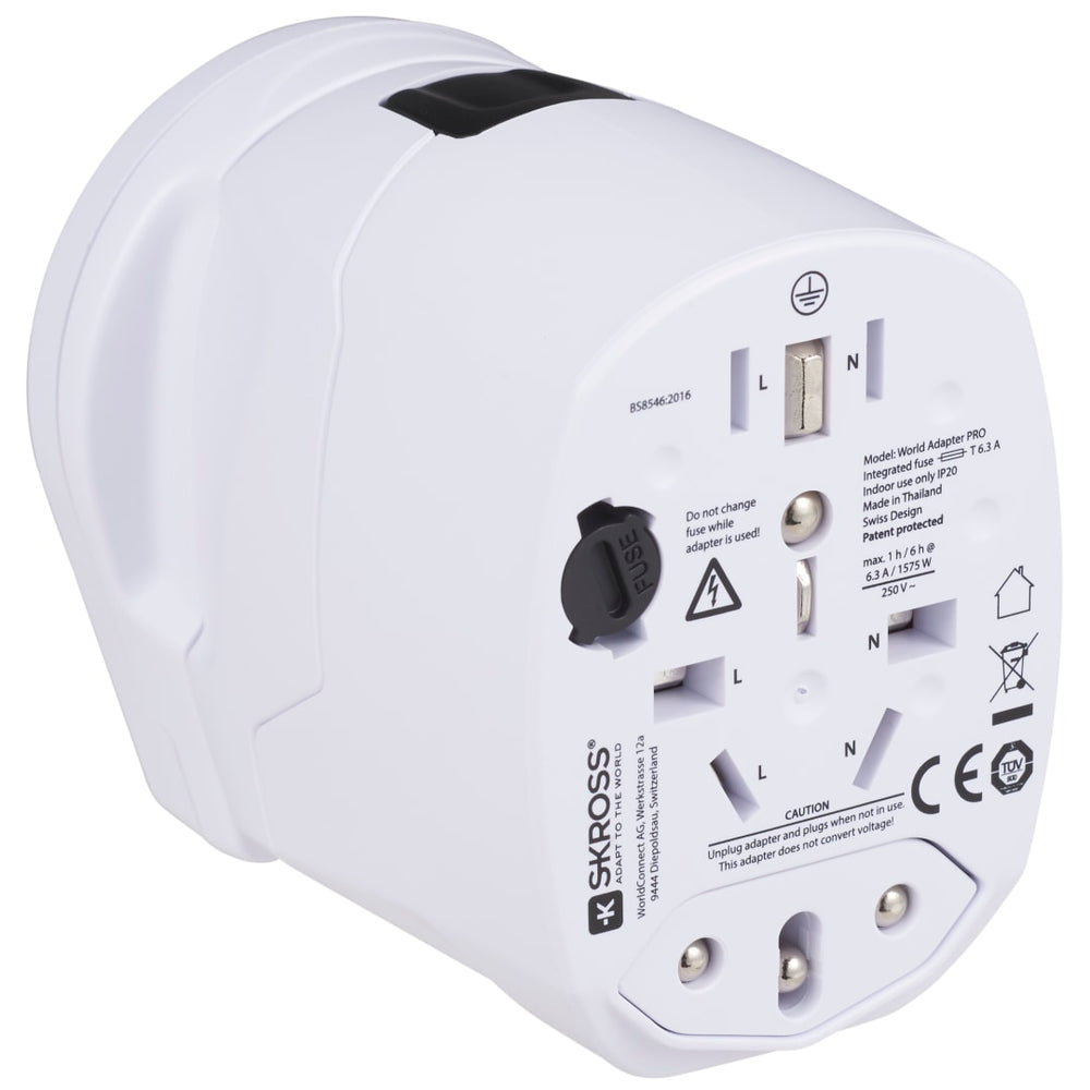 Switzerland based SKROSS® is the leading manufacturer of premium travel adapters and innovative charging solutions for users of mobile devices around the world. The World Adapter PRO World & USB is the most powerful travel adapter in the world. The compact 3-pole travel plug with an integrated USB charger works in over 150 countries. Ideal for connecting even earthed devices such as laptops and hairdryers anywhere in the world and charging USB devices simultaneously. Input voltage adapter: 100 V - 250 V. Max load: 10 A. USB output: 5 V / 2100 mA. Charge notebooks and smartphones, like iPhone, Blackberry and Android based phones, and other devices worldwide.