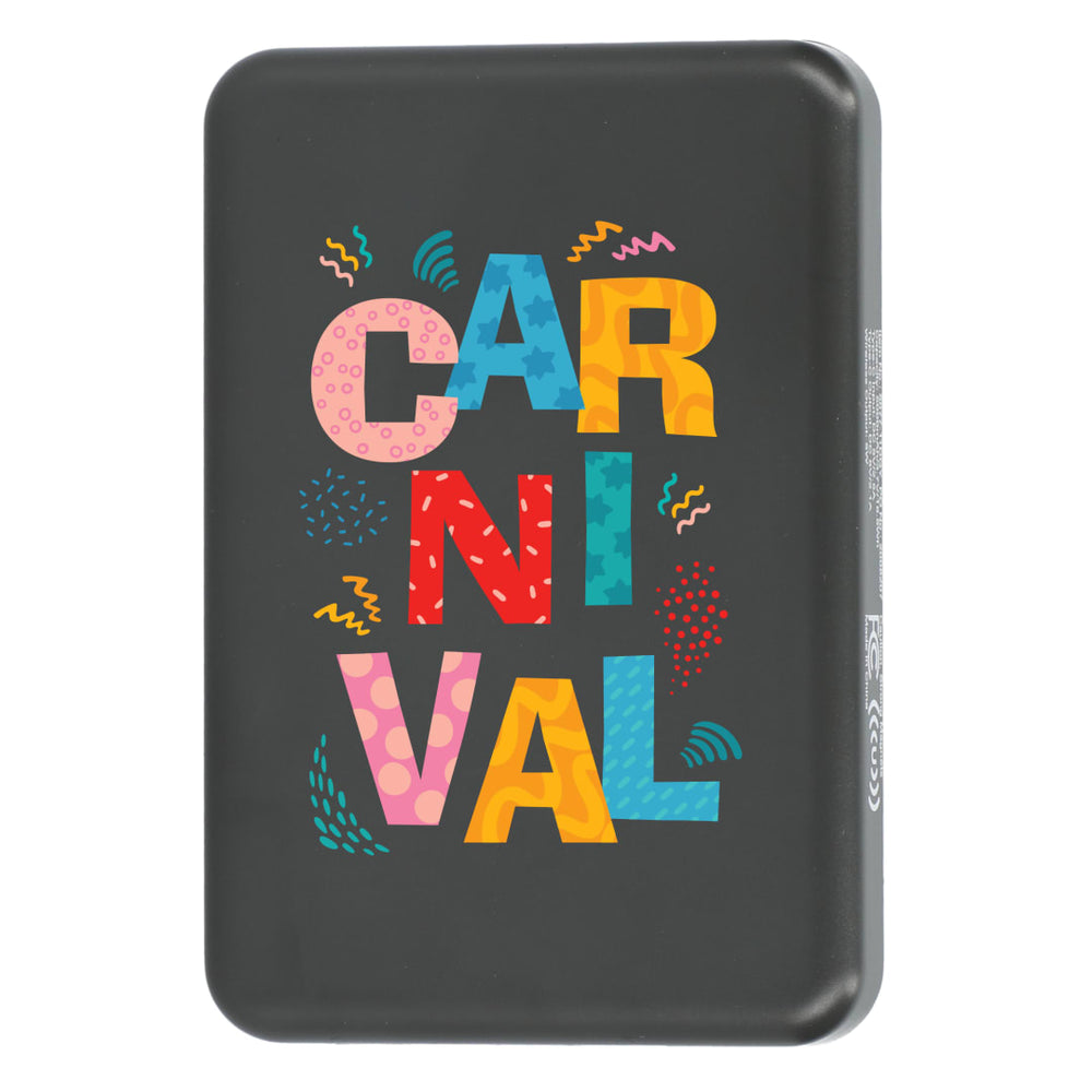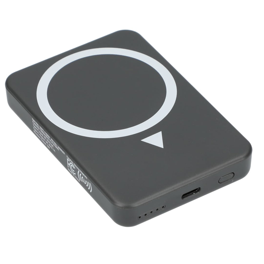 Discover the Solekick™ MagClick™ 5000 mAh Wireless Power Bank – a versatile charging pad or regular power bank on the go. It features with a rechargeable lithium polymer battery (18.5Wh). iPhone 12/13/14 models can be attached magnetically for wireless charging, and it supports 5W wireless charging for most newer devices. Type C Input/Output: 5V/2.1A. This device works with any smartphone or tablet – even ones without wireless technology – through the normal power bank capabilities. Includes a 31-inch USB-A-to-Type-C charging cable. Packaged in a FSC certified premium gift box. Power banks are permitted in carry-on luggage only, and at the discretion of TSA agents. Please charge the power bank before initial use.