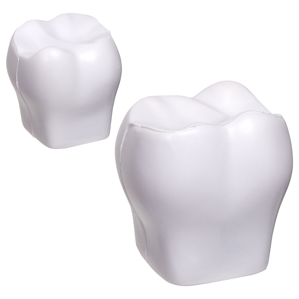 Tooth Shaped Polyurethane Stress Reliever. White stress relievers may discolor over time. Please store them in their plastic bags away from direct sunlight and distribute within 3 months.