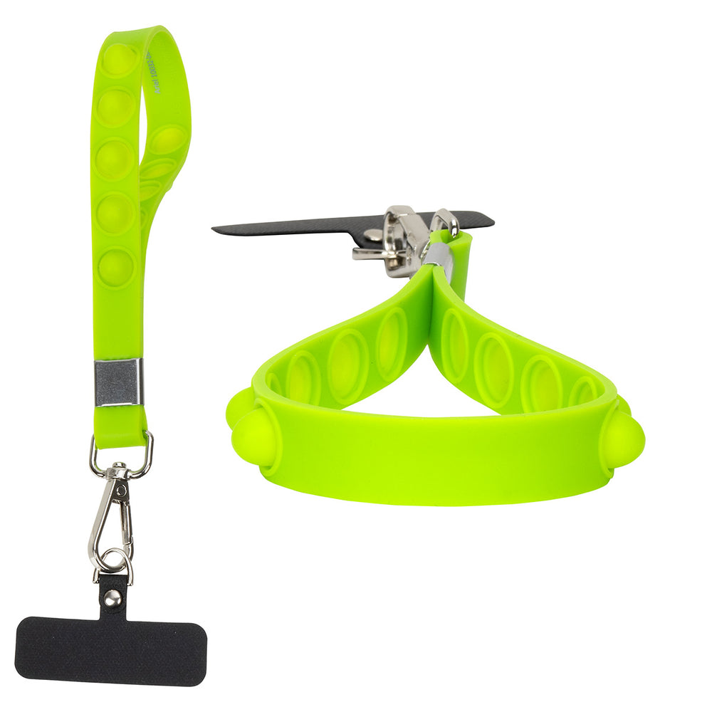 The 2-in-1 Push Pop Stress Reliever Phone and Keychain Wristlet combines fun and function with poppable silicone bubbles for stress relief and a practical wristlet for phones and keys. Made from durable, flexible silicone, it includes a metal hook for easy attachment to keys and bags or to detach phone from wristlet. Lightweight and compact, it easily fits in your pocket. Available in vibrant colors, it’s the perfect playful and versatile everyday accessory.