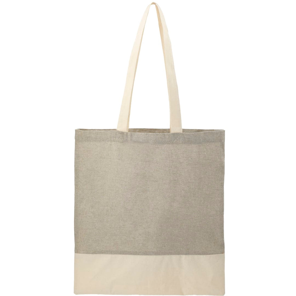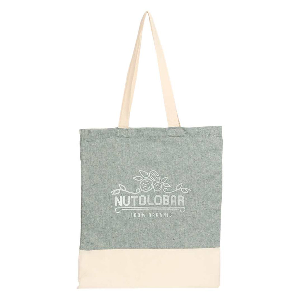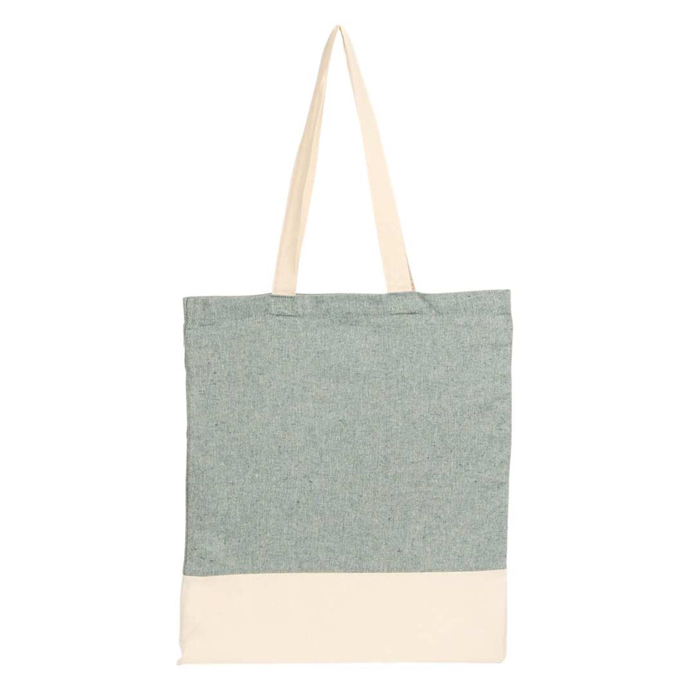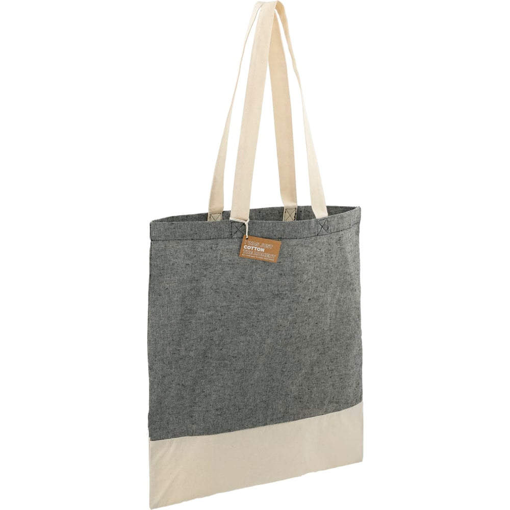 The Split Recycled 5oz Cotton Twill Convention Tote is manufactured from cotton and recycled pre-consumer recycled cotton generated by factories during the fabric cutting process. It is approximately 70%-80% recycled cotton and 20-30% RPET. This tote features a trendy color-block design with an open main compartment. Through a partnership with 1% For The Planet one percent of sales of this and all EcoSmart products will be donated to nonprofits dedicated to protecting the planet.